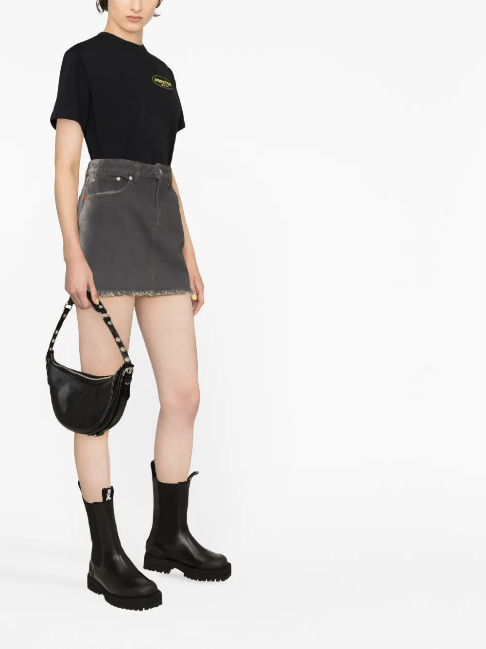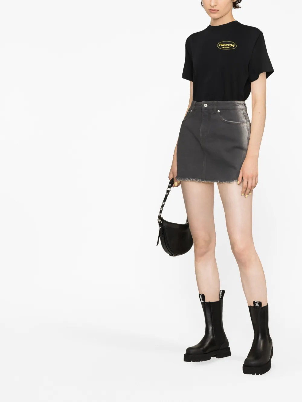 Черный, хлопок, принт с логотипом на груди, принт с логотипом сзади, круглый вырез, короткие рукава и прямой подол.