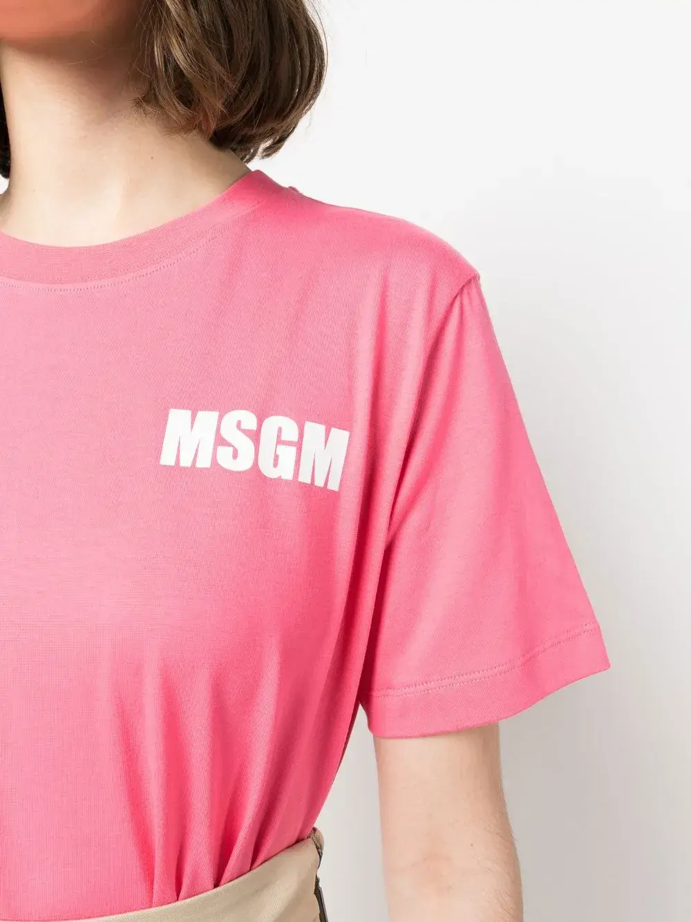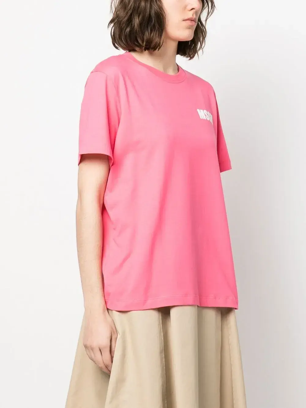 Розовый, хлопок, принт с логотипом на груди, принт с логотипом сзади, круглый вырез, короткие рукава и прямой подол.