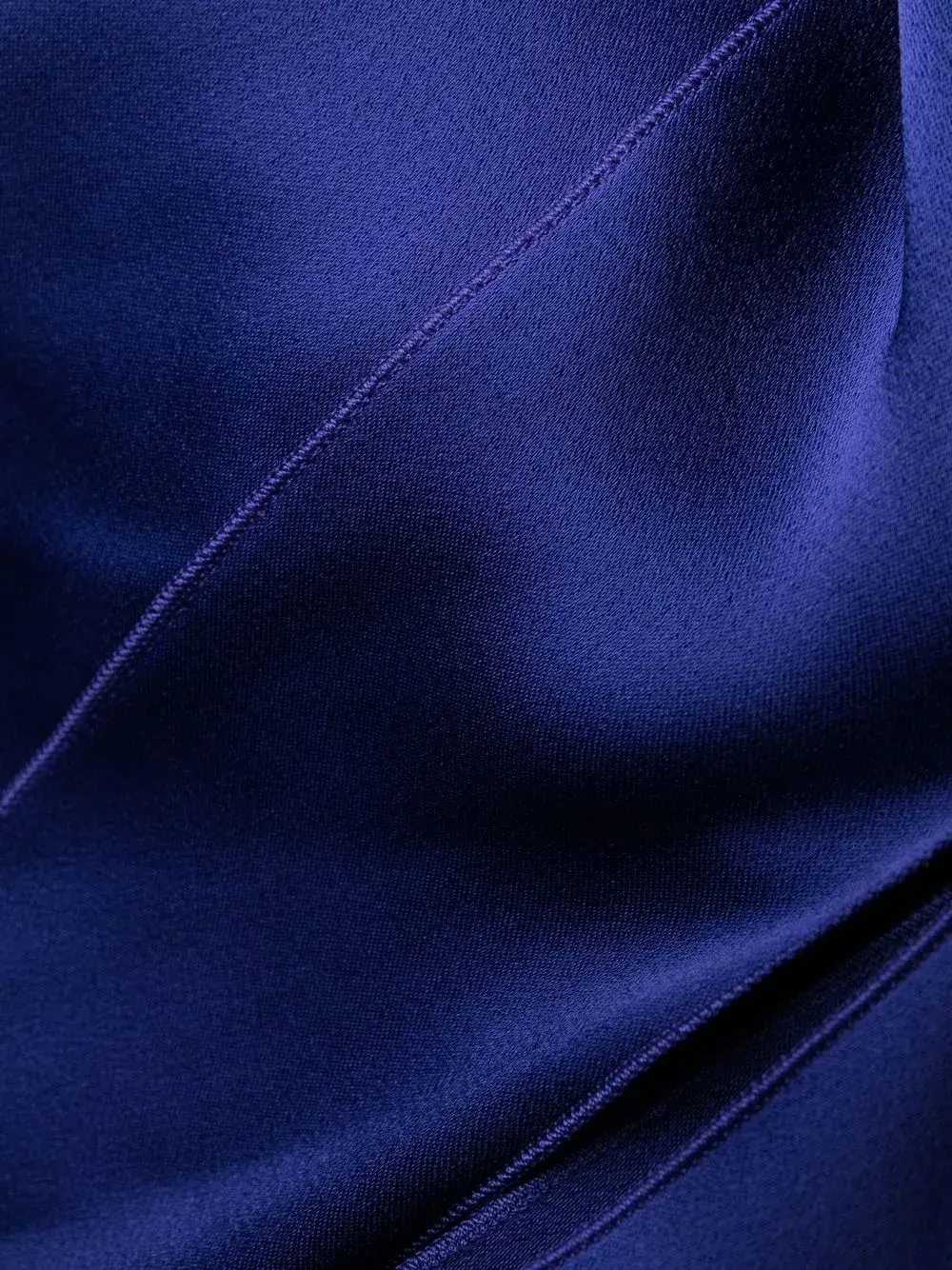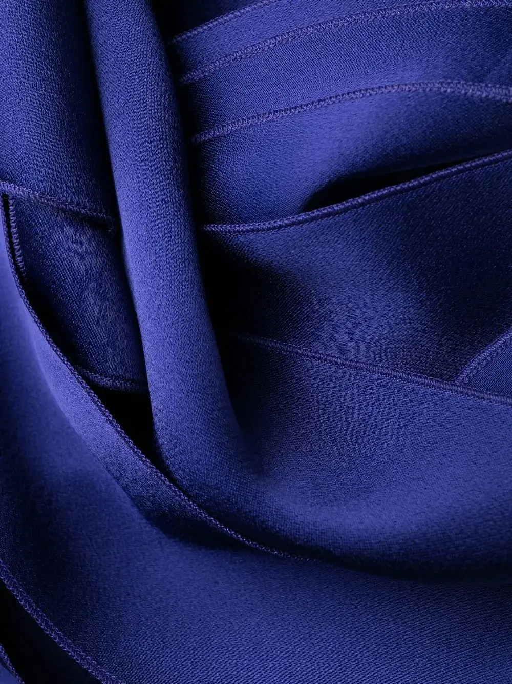 Сапфировый, края с бахромой, U-образный вырез, без рукавов и длинная модель. Ответственный выбор: Мы объединились с агентством Good On You, которое оценивает бренды по степени их влияния на животных, людей и планету в целом. Этот бренд использует этичные по отношению к животным практики, поэтому получил хорошую оценку.