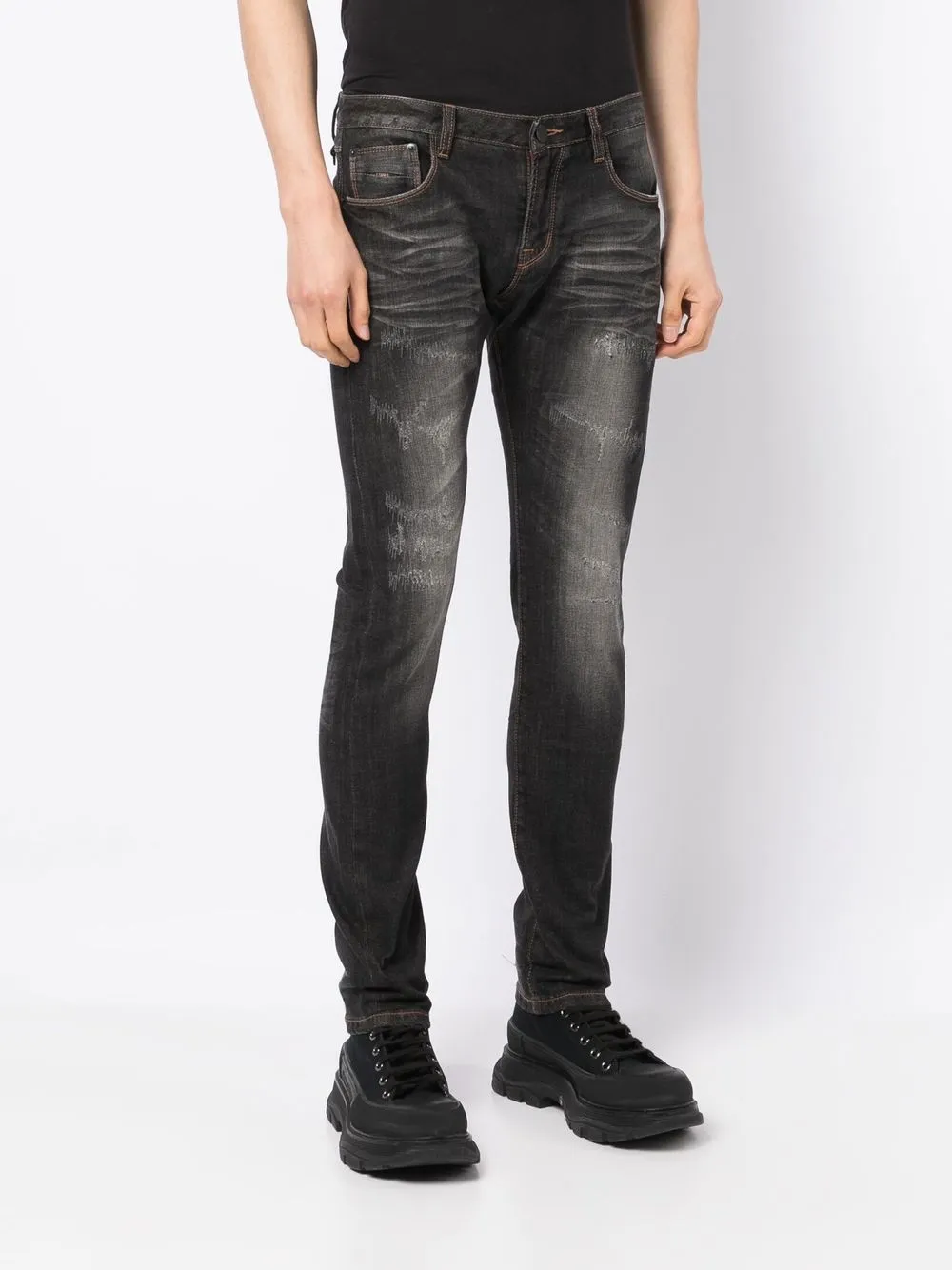 Джинсы скинни с эффектом потертости Private Stock, серый 28 207₽