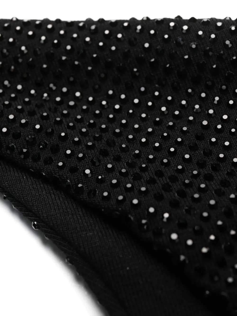 Черный, эластичный хлопок, декор из кристаллов, браслет в два оборота и высокий вырез. Эту вещь можно примерить, но только поверх собственного белья.