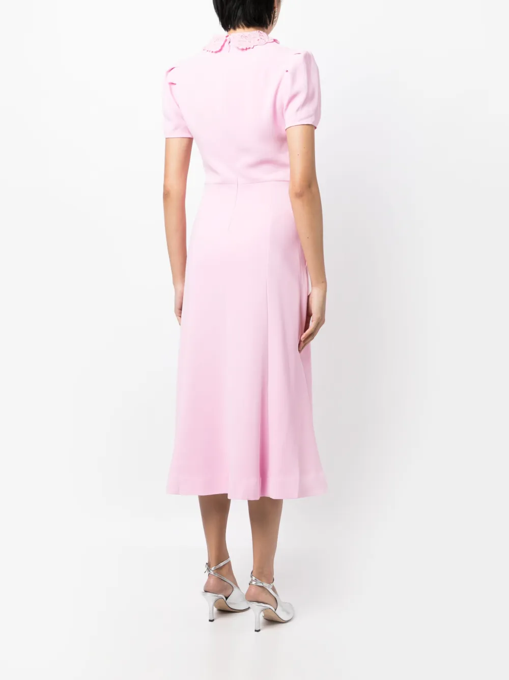 Платье миди с кружевным воротником Self-Portrait, розовый