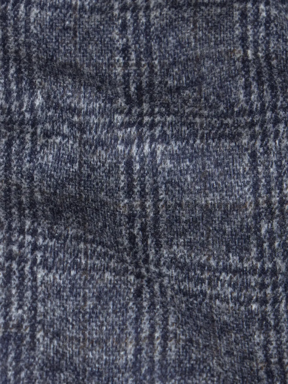 Голубой, смесь шерсти и хлопка, клетчатый узор, отложный воротник, застежка на пуговицах спереди, длинные рукава, манжеты на пуговицах, прорезной карман на груди, два передних кармана с клапанами и атласная подкладка.