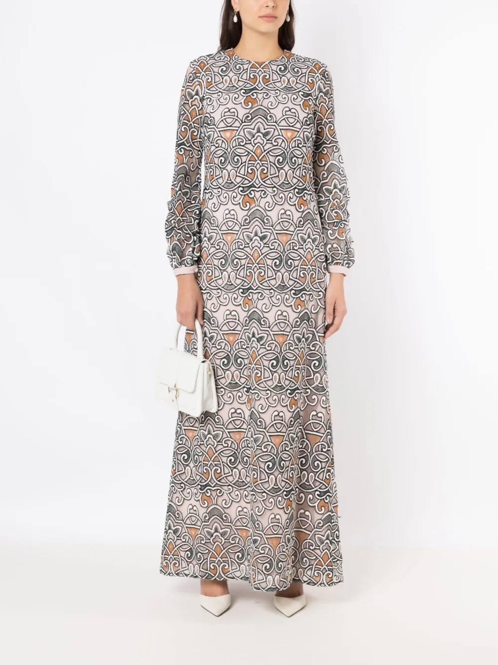 Платье макси Arabesco с вышивкой Olympiah, нейтральный