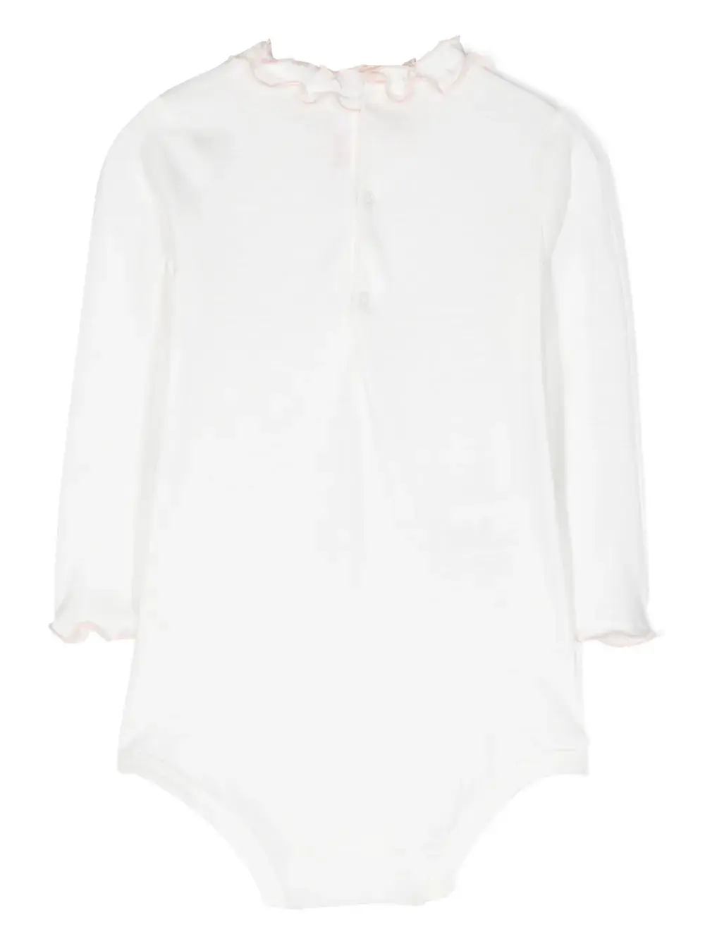 Белый, светло-розовый, хлопок, воротник с оборками, чехол с застежкой на кнопку и длинные рукава.