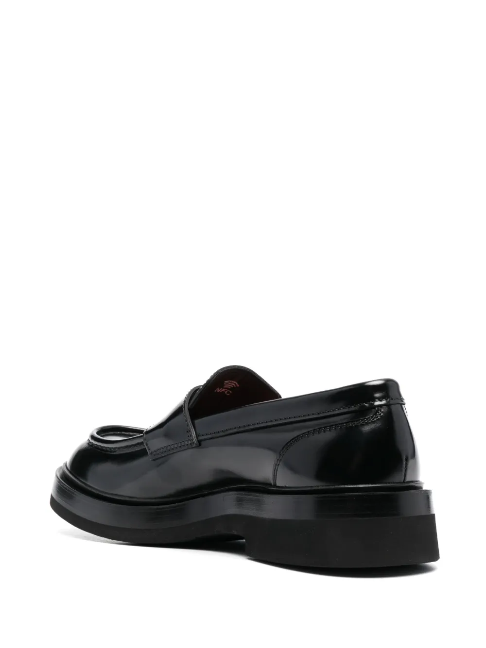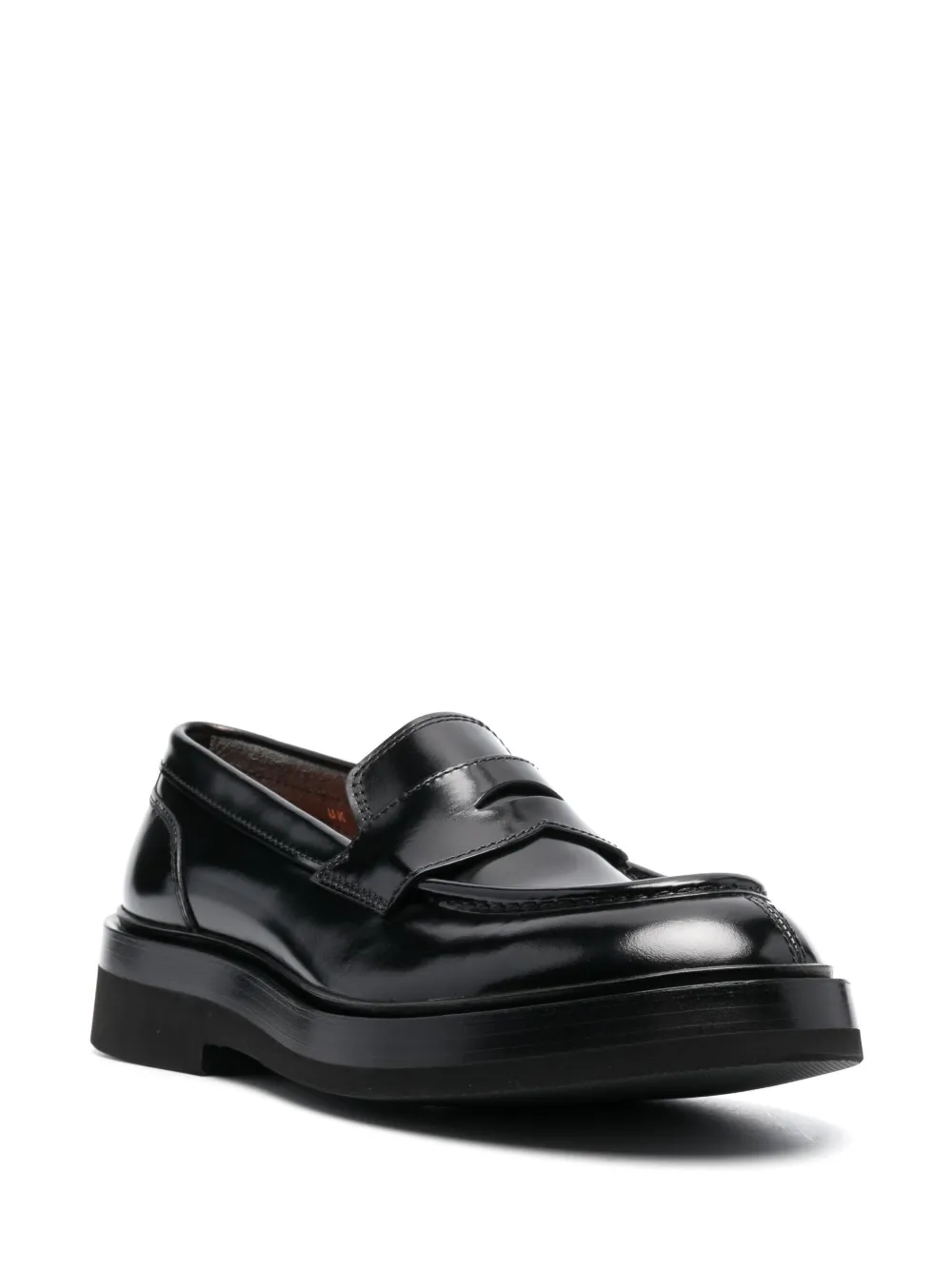 Черный, телячья кожа, модель без застежки, закругленный носок, кожаная стелька с логотипом и плоская резиновая подошва.
