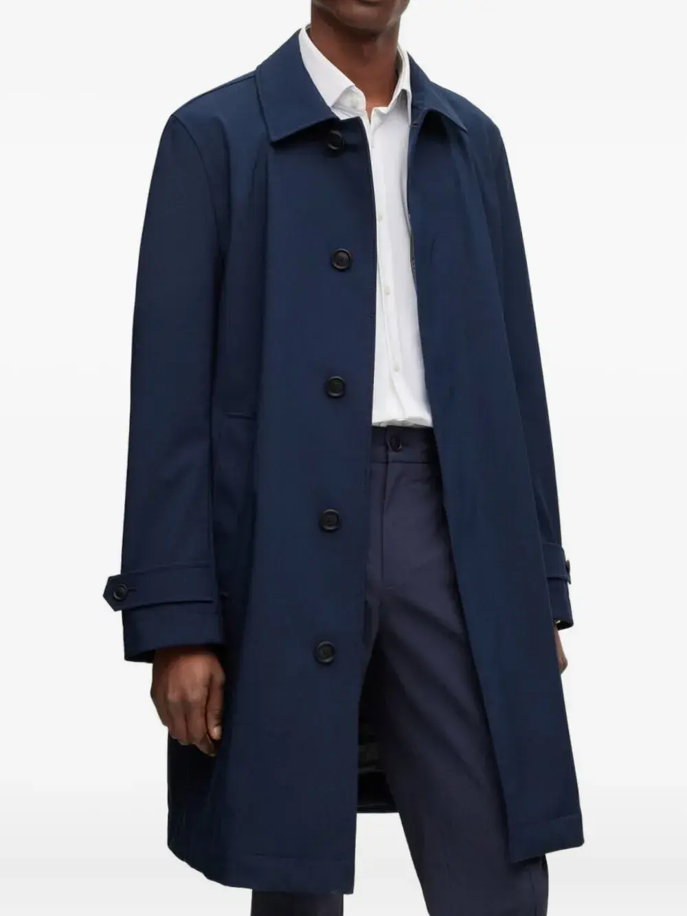Тренчкот на пуговицах BOSS, синий