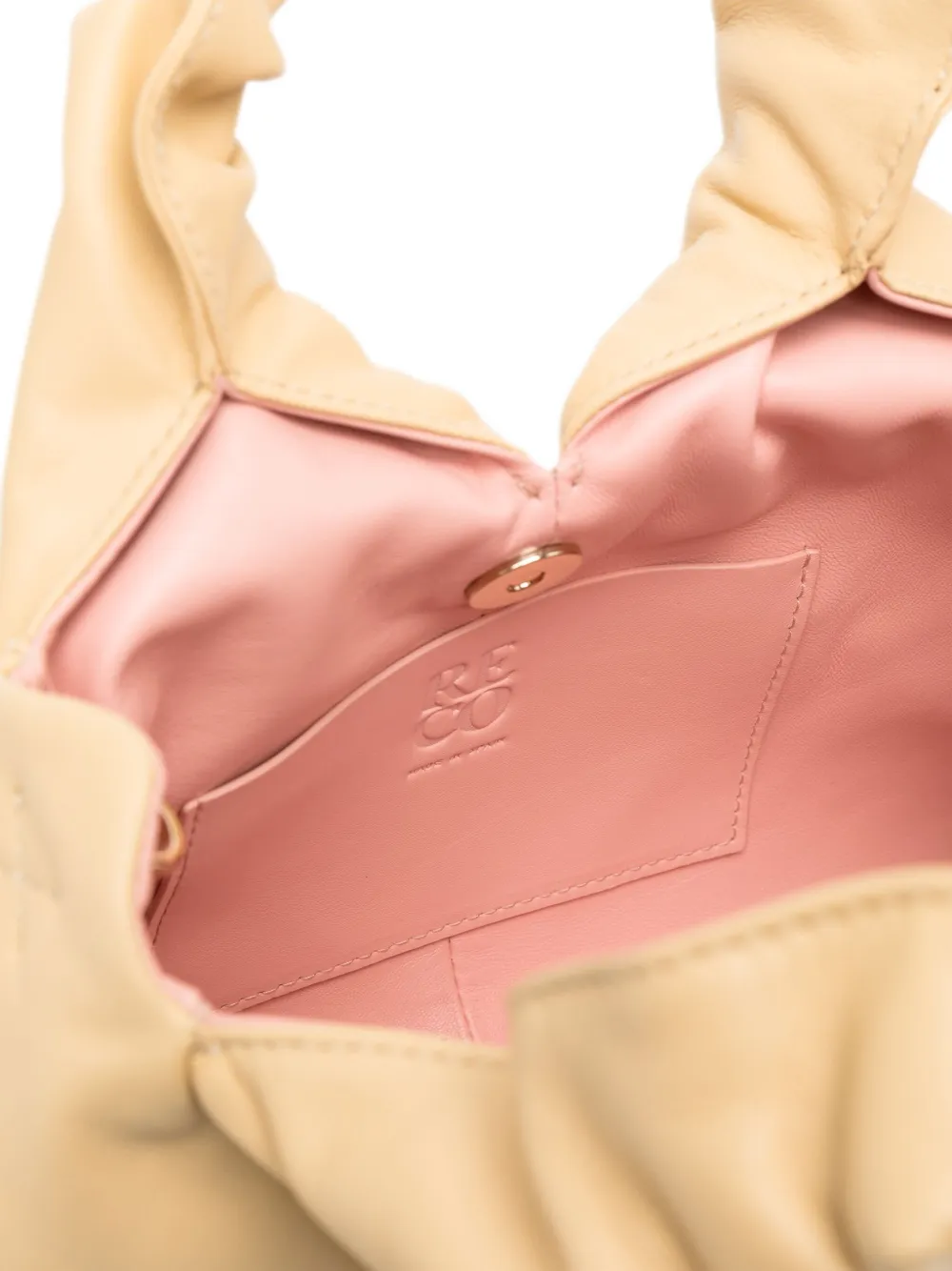 Канареечный, телячья кожа, стеганая модель, потайная застежка на магните, две верхние ручки, два съемных ремня из кожи и металла, основное отделение и внутренний прорезной карман. Узнать больше о том, какие товары получают отметку «Ответственный выбор», можно из материала «Как мы оцениваем экологичность и этичность».
