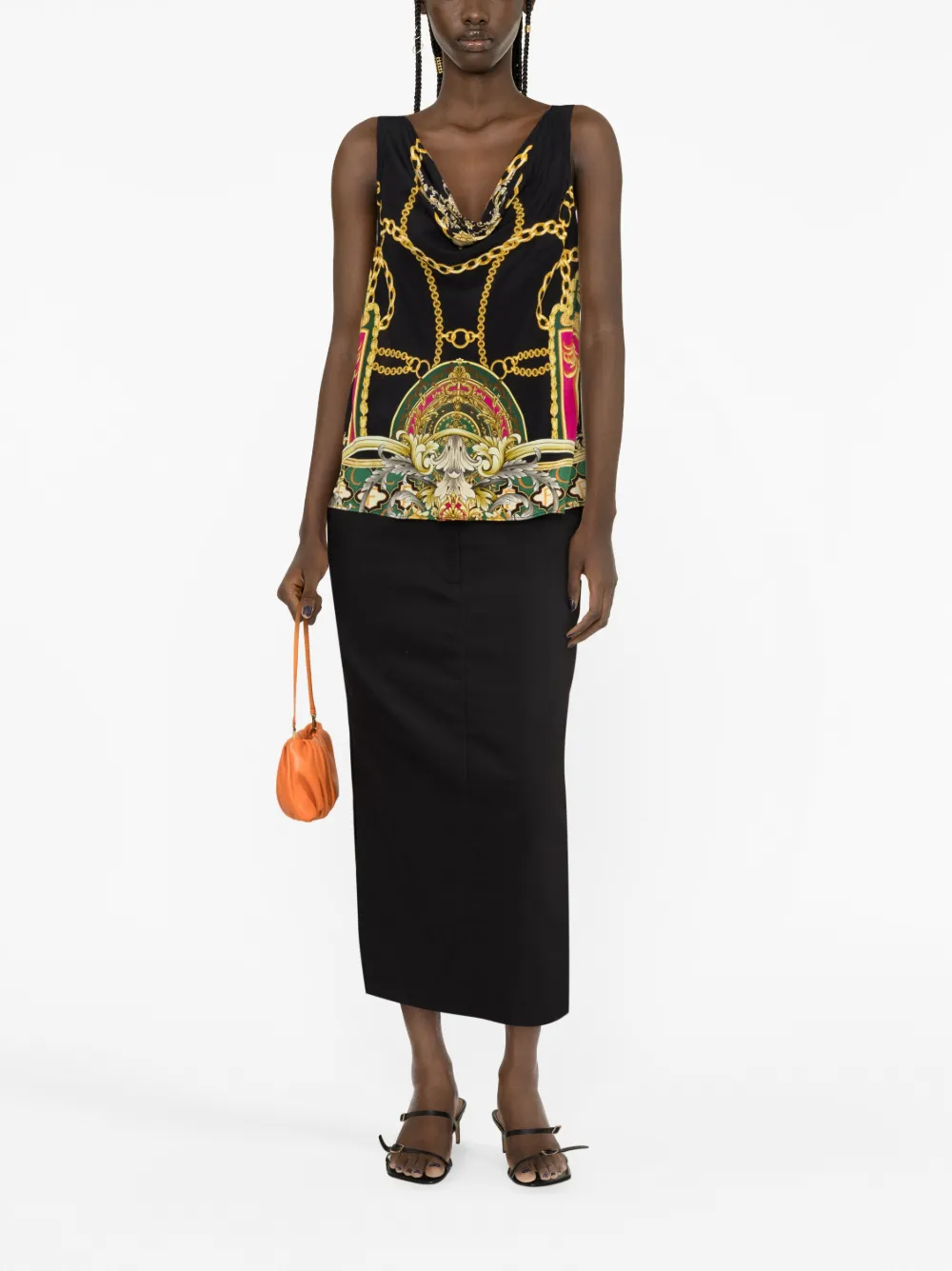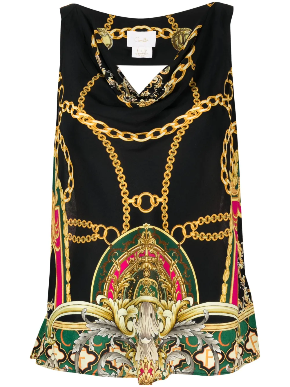 Шелковый топ с графичным принтом Camilla, черный 80 761₽