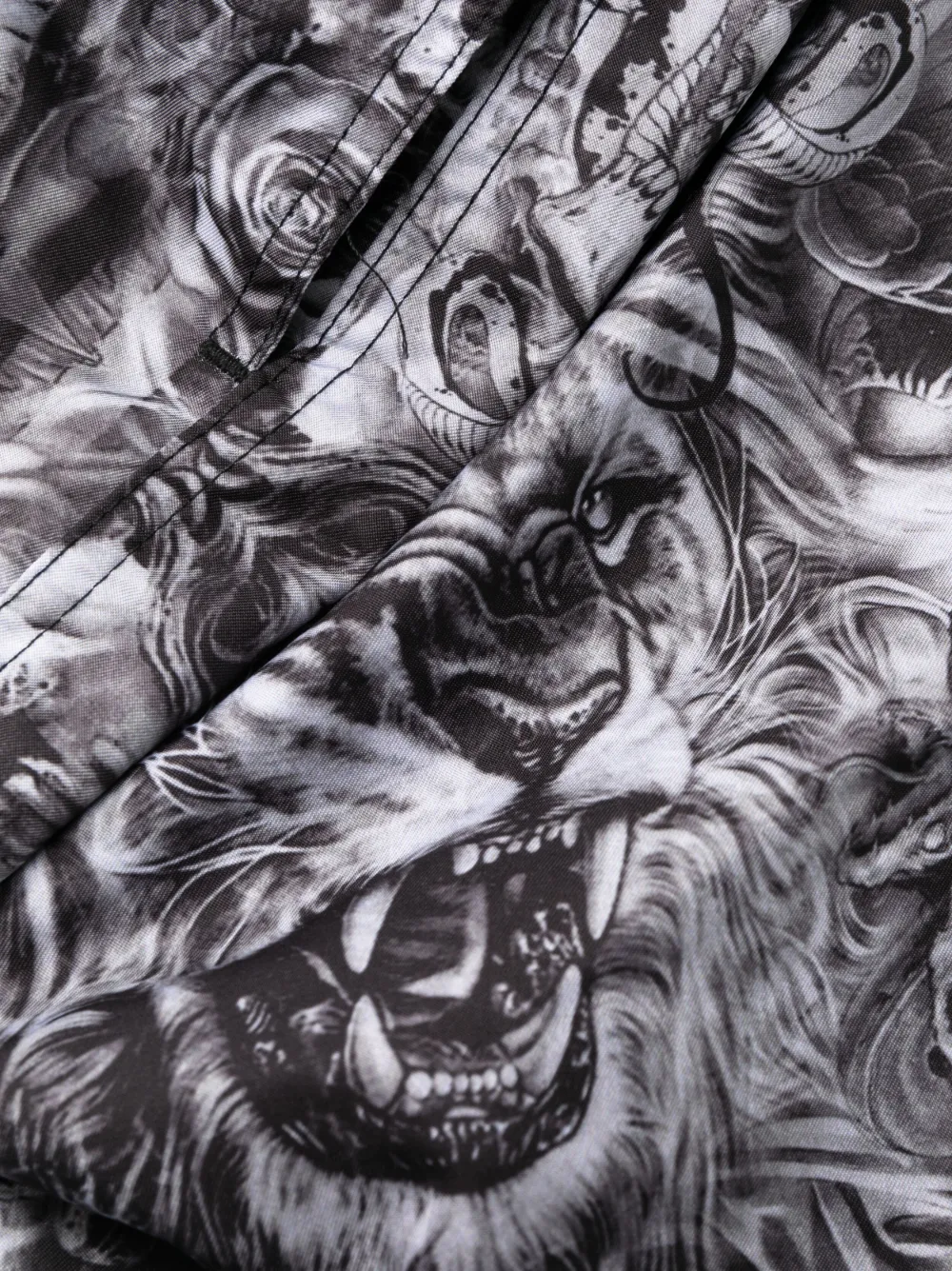 Черный/белый, сплошной графичный принт, эластичный пояс, задние карманы с листочкой и длина по колено. Пожалуйста, примеряйте купальники и пляжные шорты только поверх собственного белья.