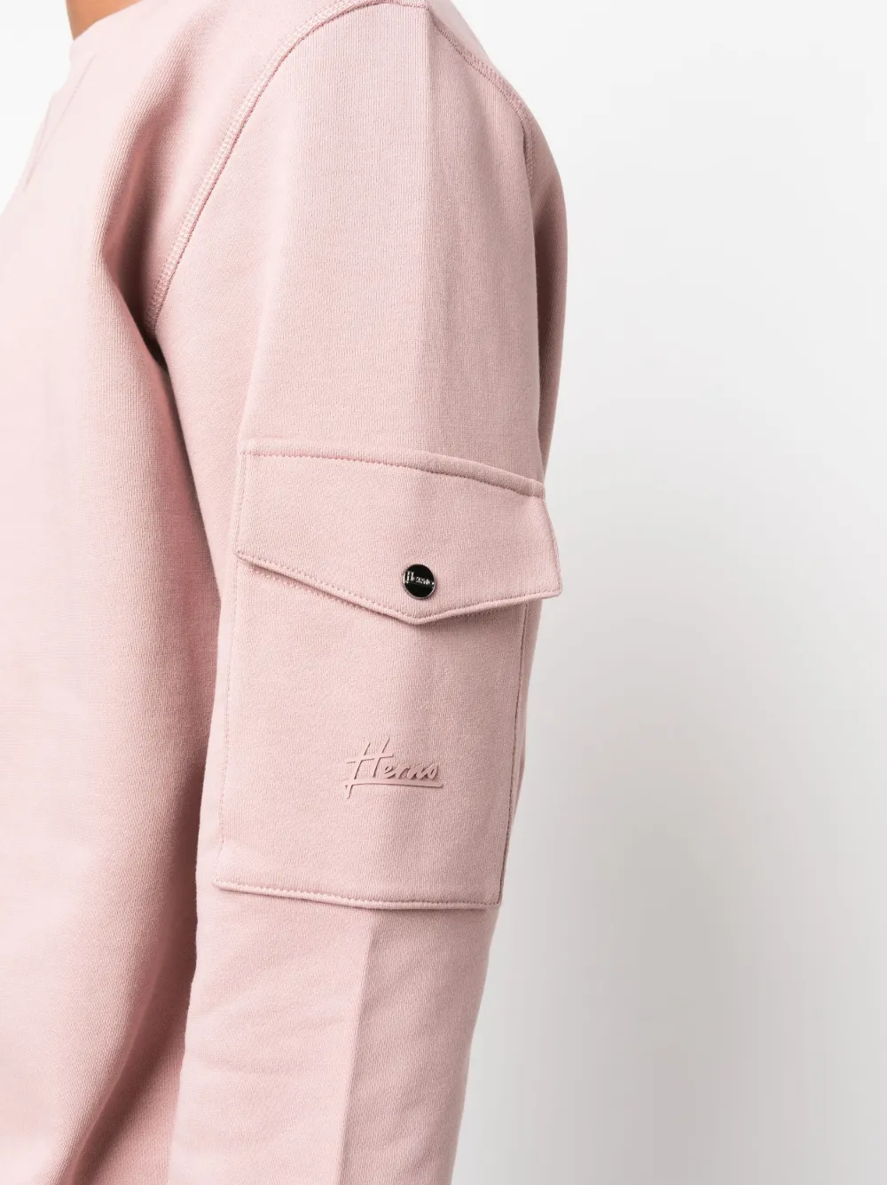 Светло-розовый, хлопок, флисовый материал, круглый вырез, длинные рукава и накладной карман на рукаве.