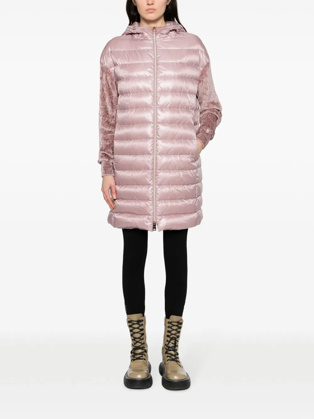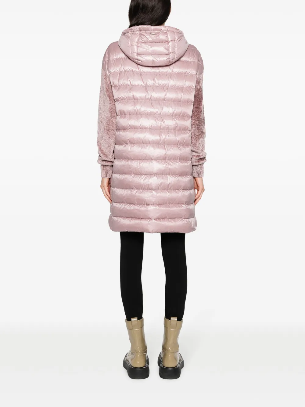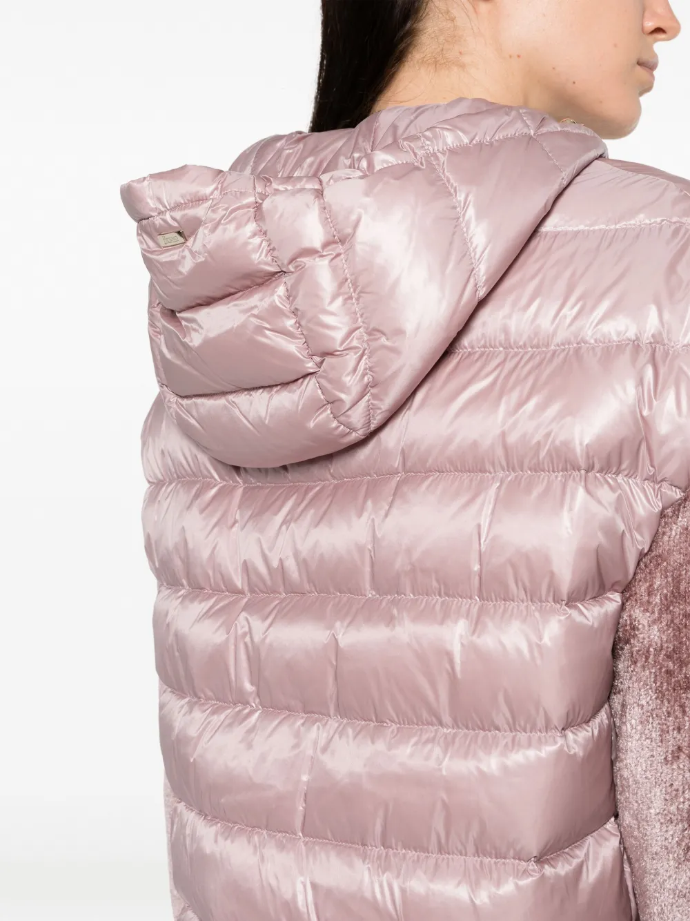 Пуховик с контрастными рукавами и капюшоном Herno, розовый