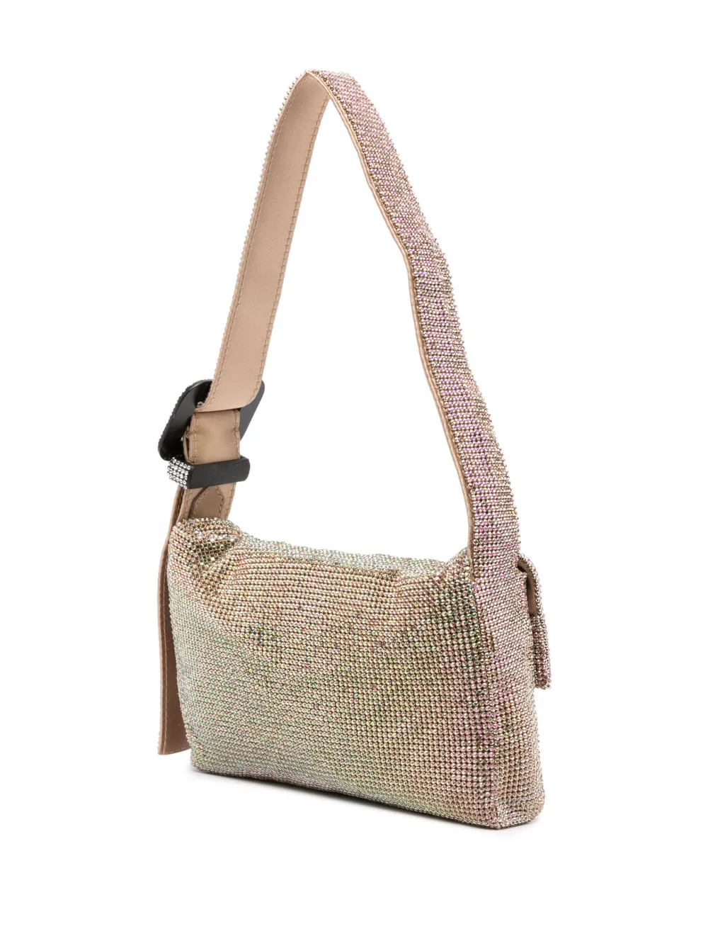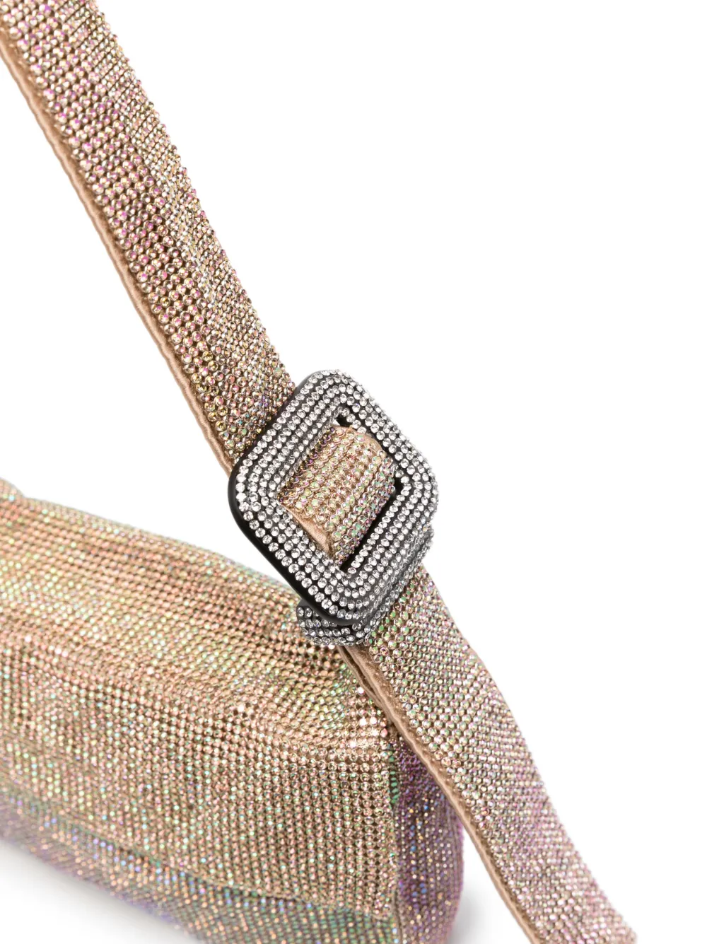 Золотистый, украшения из горного хрусталя, фурнитура в тон, откидной клапан, потайная застежка на молнии сверху, регулируемый ремень на плечо, основное отделение, нашивка с логотипом внутри и шелковая подкладка.