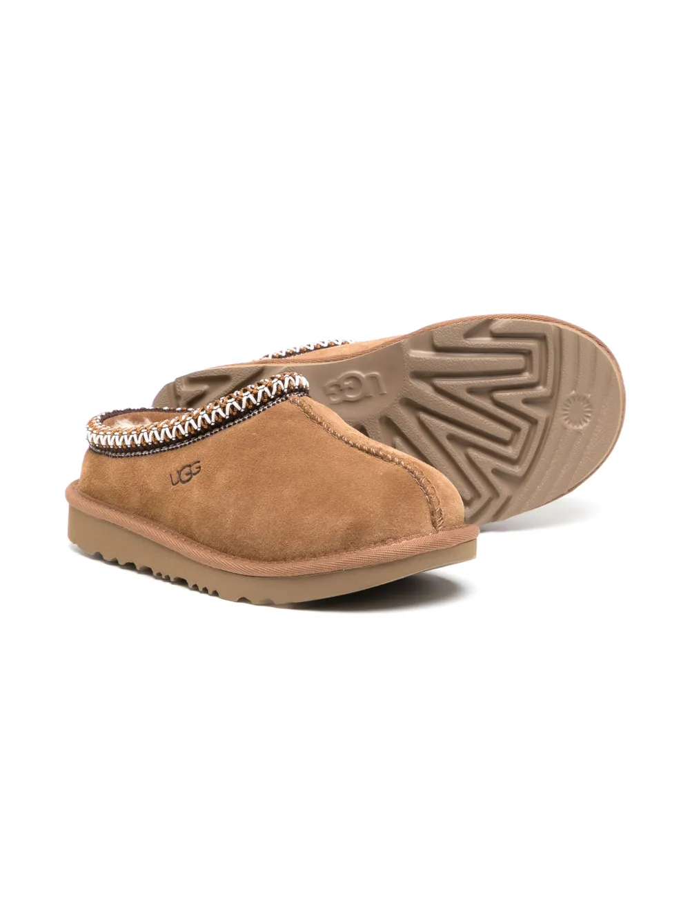 Карамельный, смесовая шерсть, переработанный полиэстер, контрастная отделка, тисненый логотип сбоку, закругленный носок, модель без застежки и плоская резиновая подошва.
