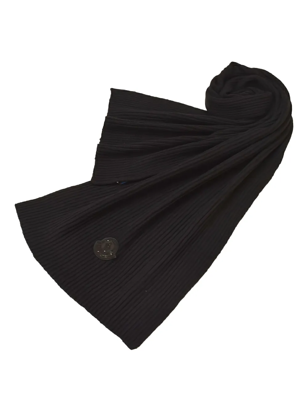 Шарф в рубчик с логотирированной бляшкой MONCLER, черный