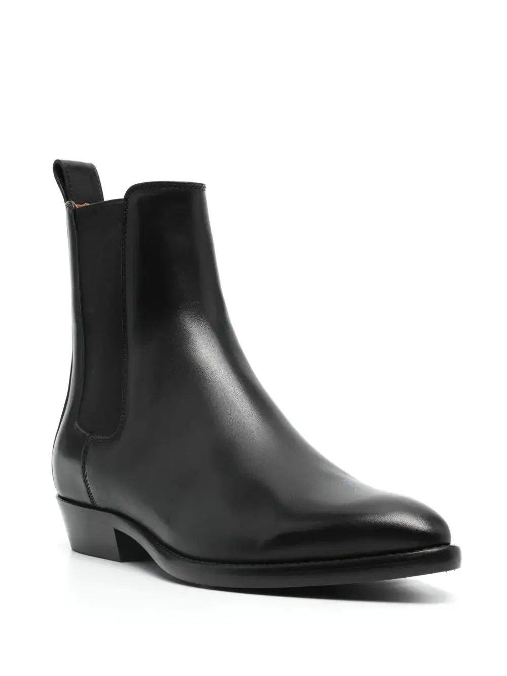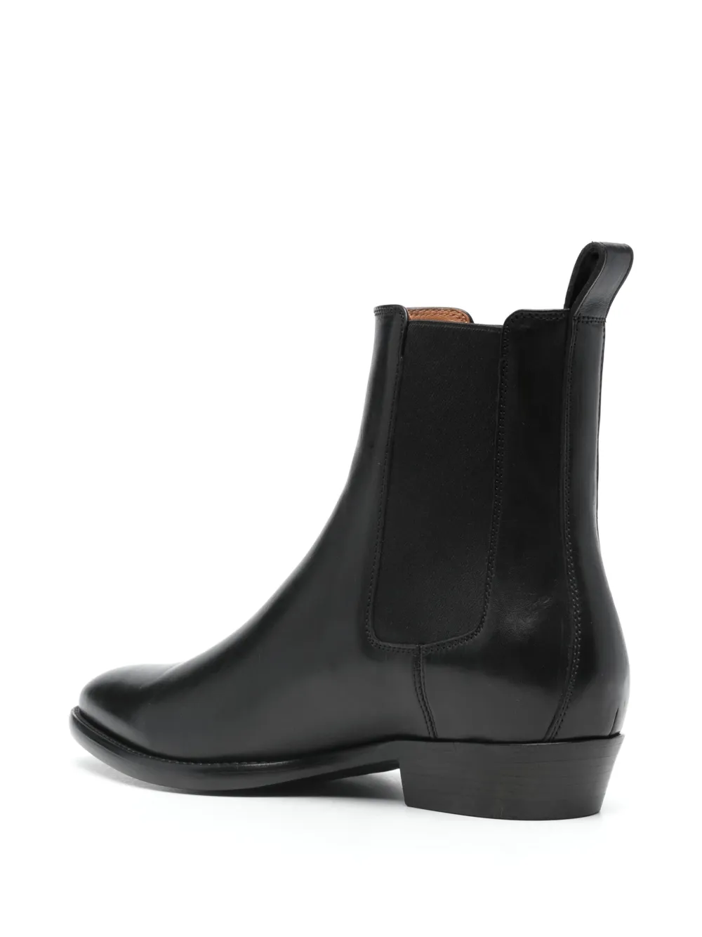 Расцветка Core Black, телячья кожа, эластичные боковые вставки, петля для подтягивания сзади, заостренный носок, модель без застежки, кожаная стелька с логотипом, кожаная подошва и высота по щиколотку.