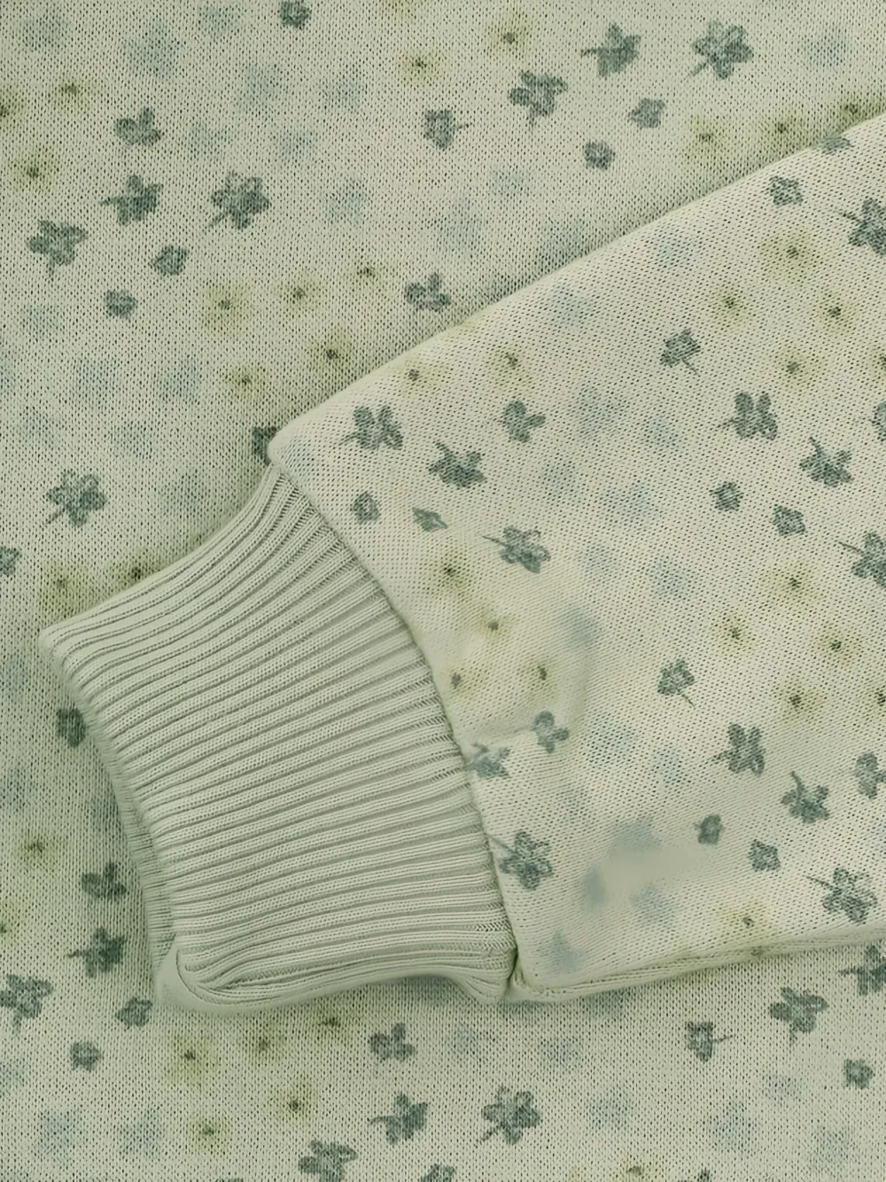 Светло-зеленый всех поверх цветочный принт длинные рукава круглый вырез