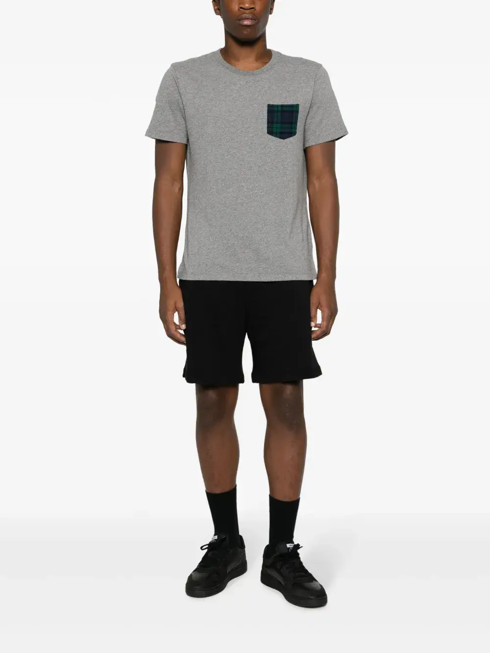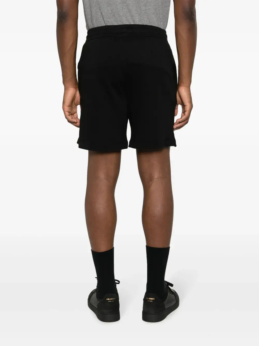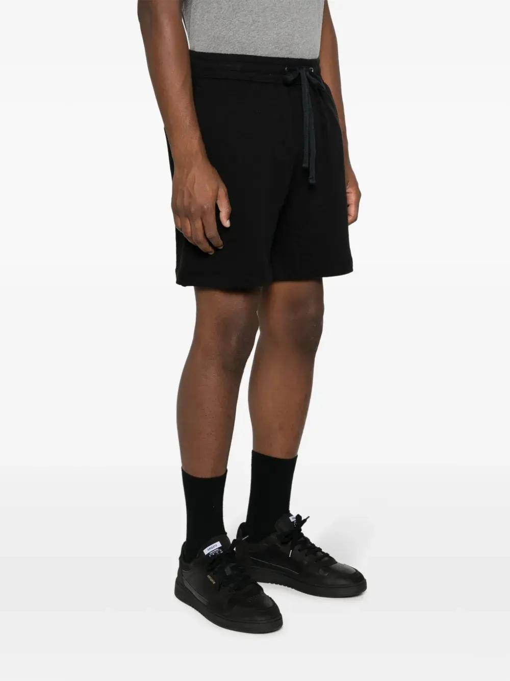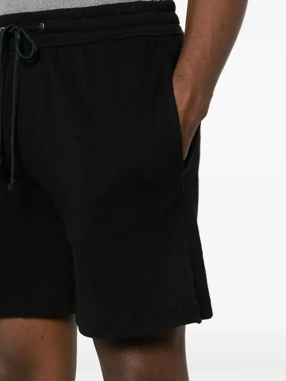 Черный, хлопок, эффект меланж, кулиска на талии, прямой крой, длина выше колена и два вшитых кармана по бокам.