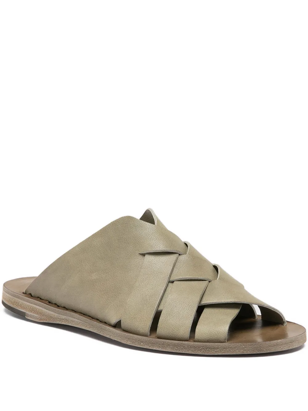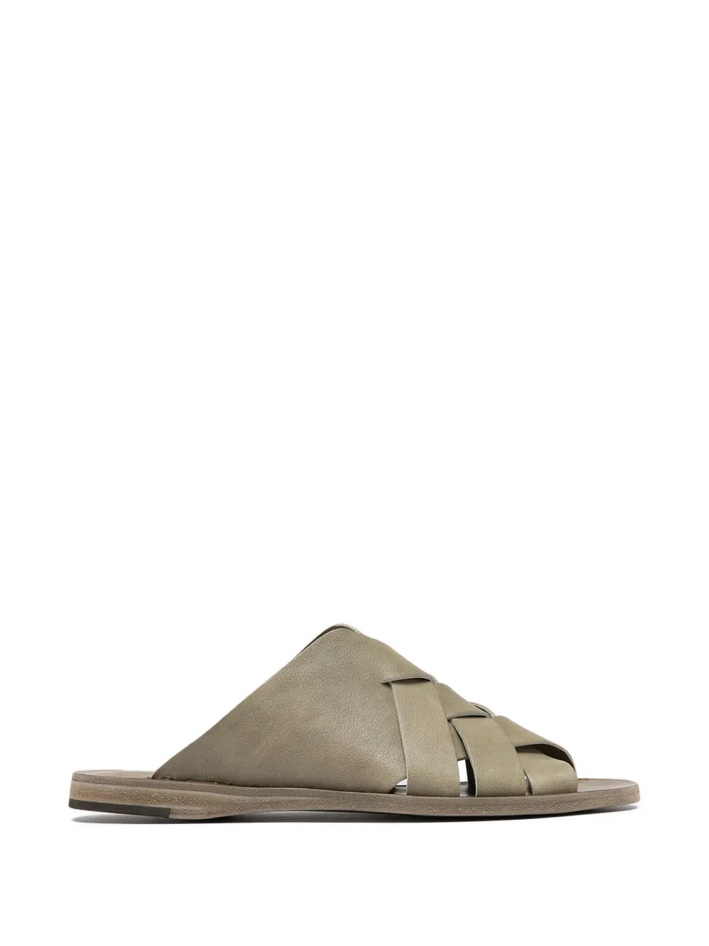 Оливково-зеленый верх из кожи открытый носок плоская подошва модель без застежки (в стиле "слайд")