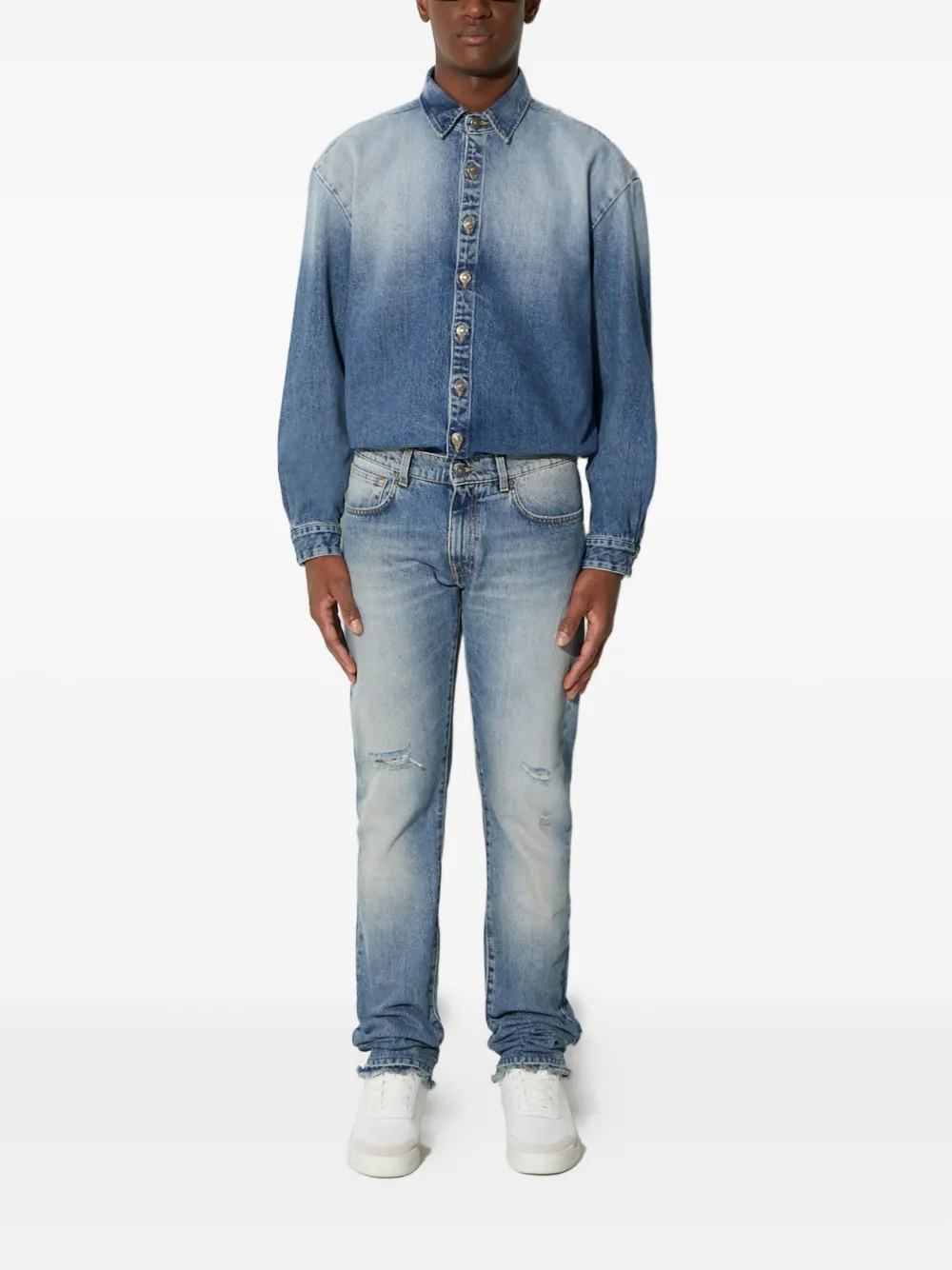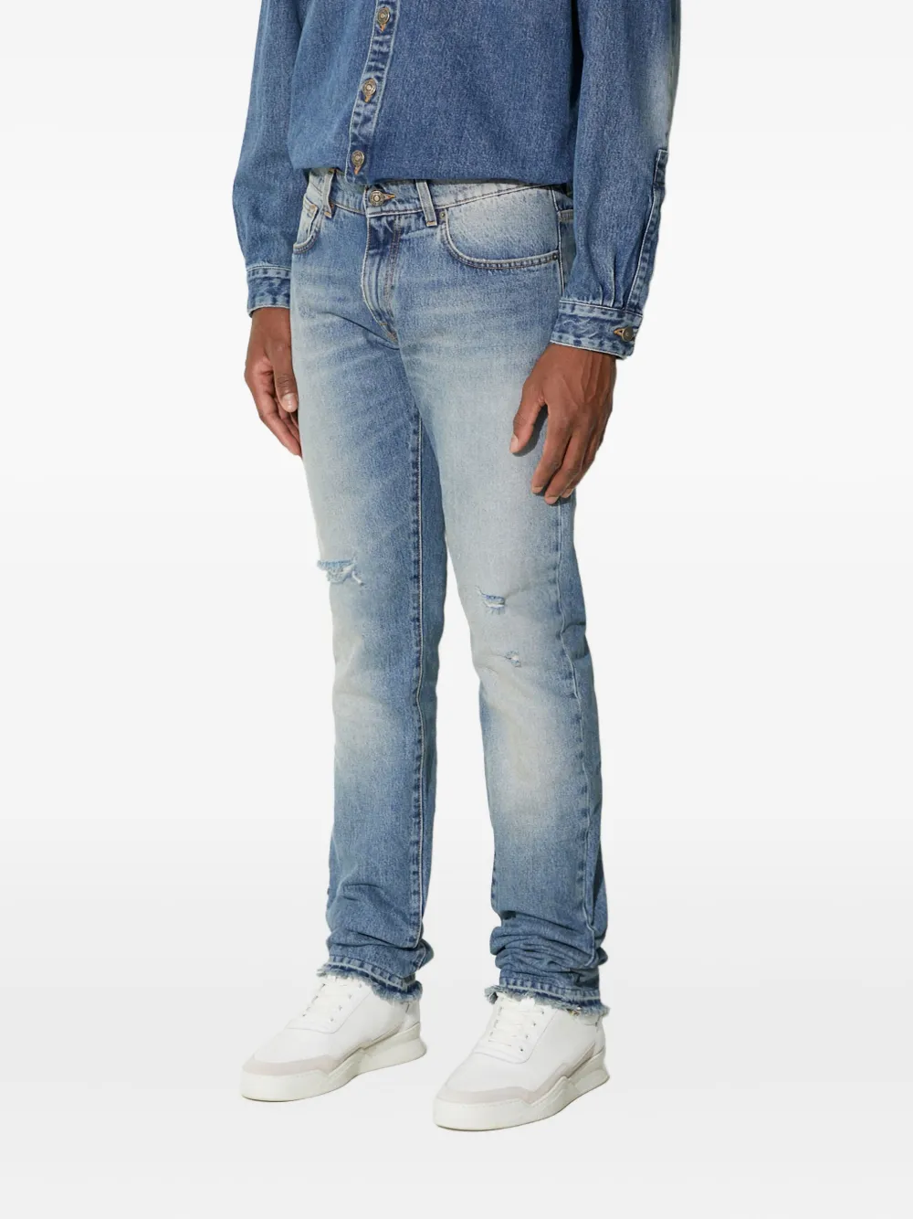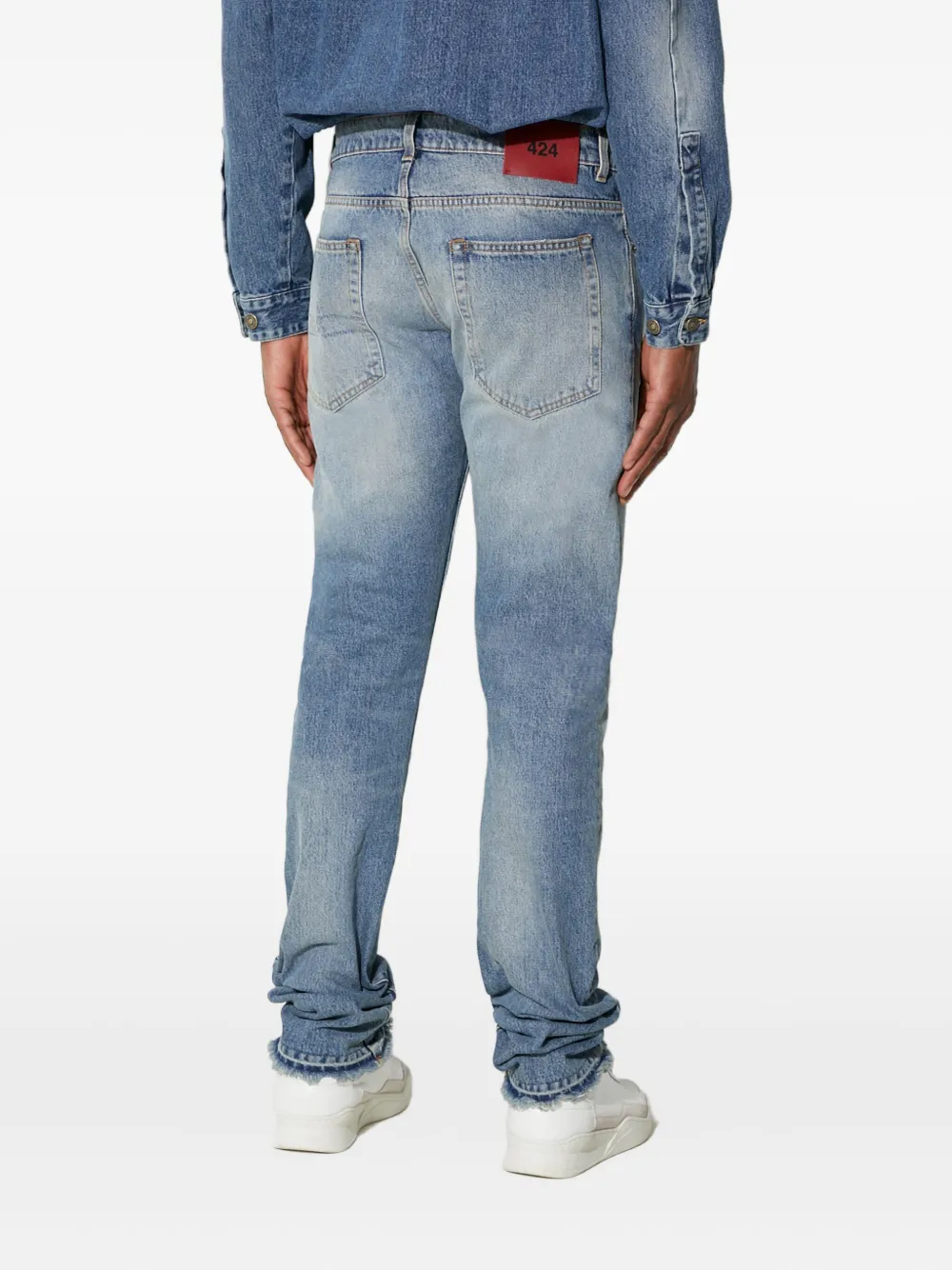 Джинсы с эффектом потертостей и необработанным краем 424, синий
