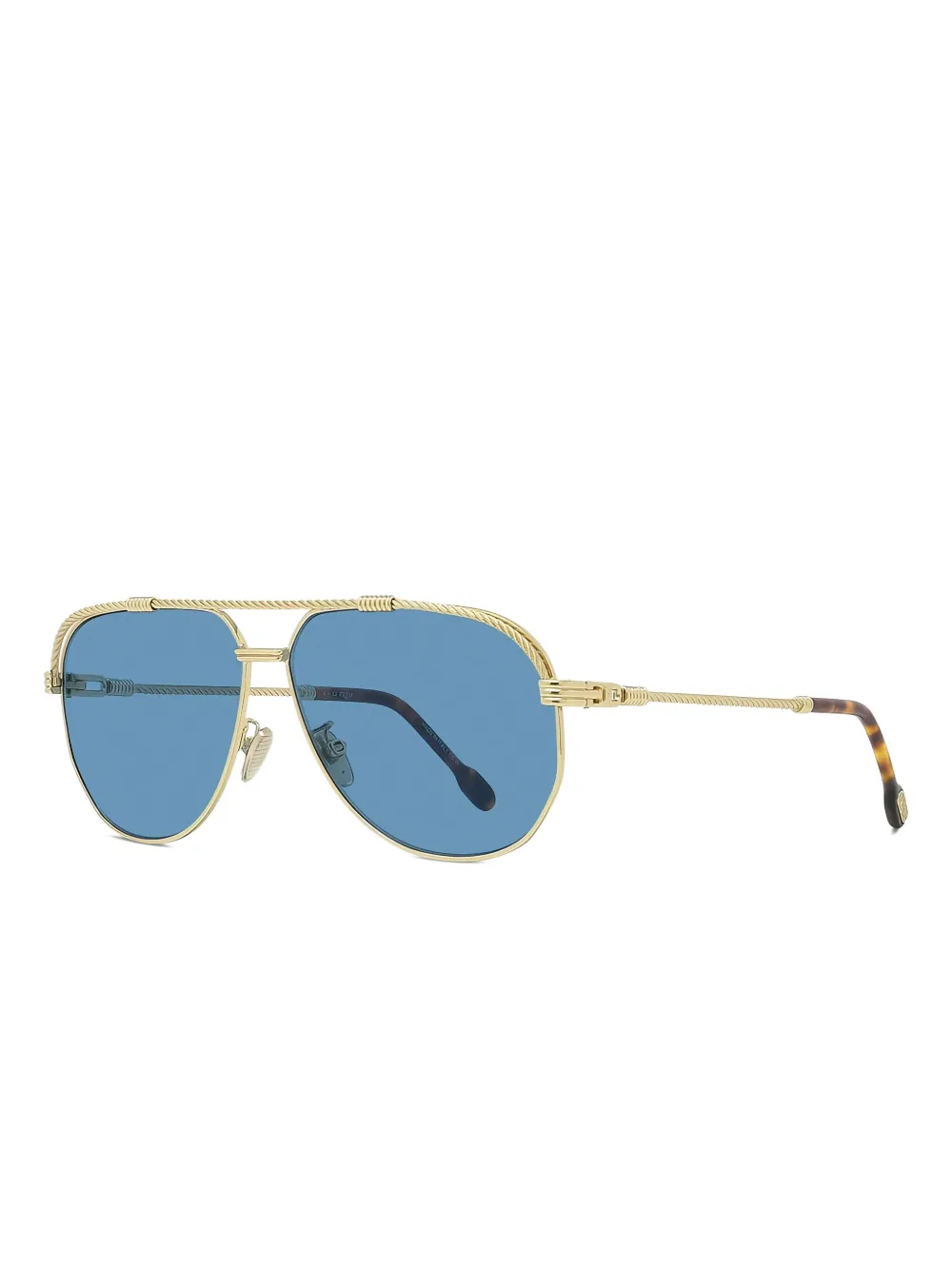 Синий оправа с отделкой под золото дужки с кабельным декором тонированные линзы геометрическая форма оправы носовые упоры В комплекте идет защитный футляр.