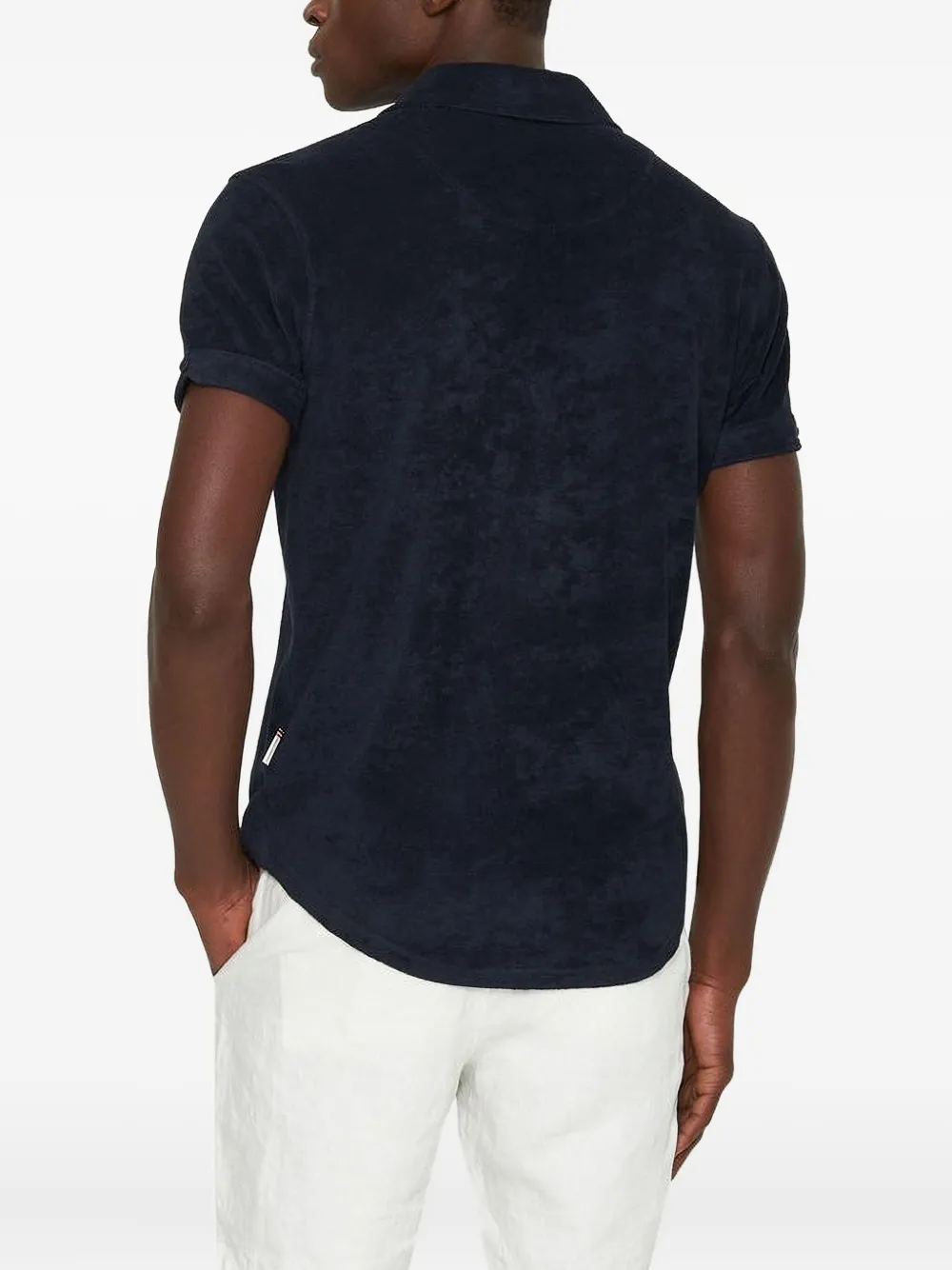 Темно-синий короткие рукава застежка на пуговицах прямой край