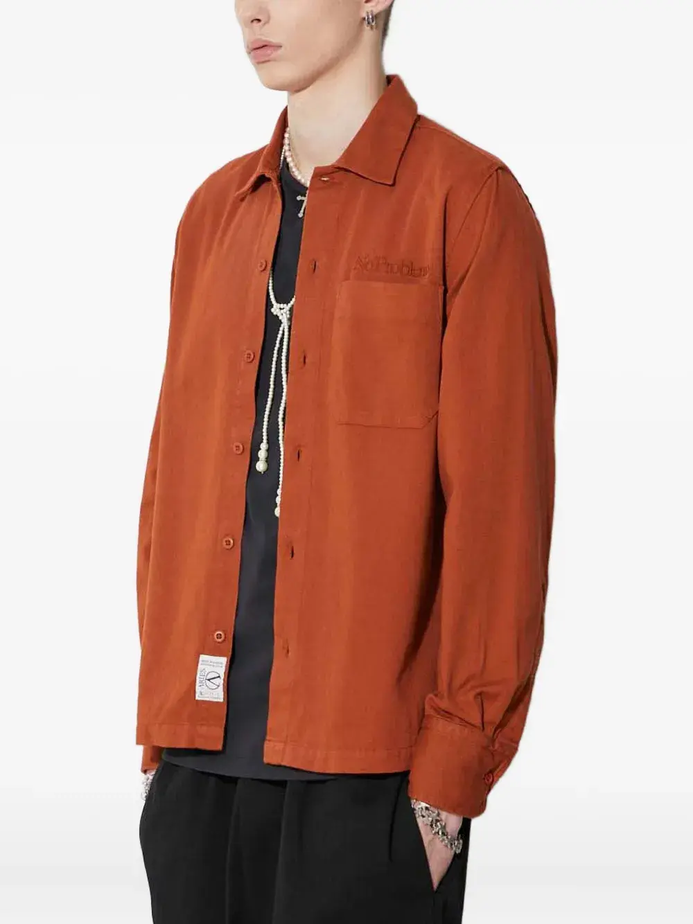 Оранжевая рубашка с вышитым логотипом, длинными рукавами, застежкой на пуговицы и нагрудным накладным карманом