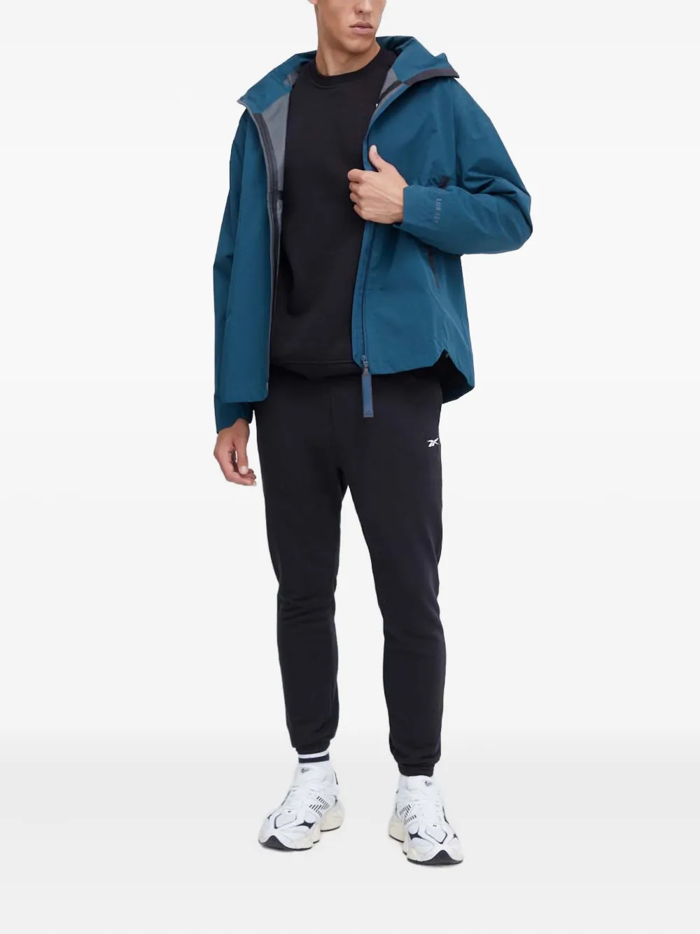 Бирюзово-синий застежка-молния деталь в виде трех полос принт с квадратным логотипом регулируемый капюшон длинные рукава