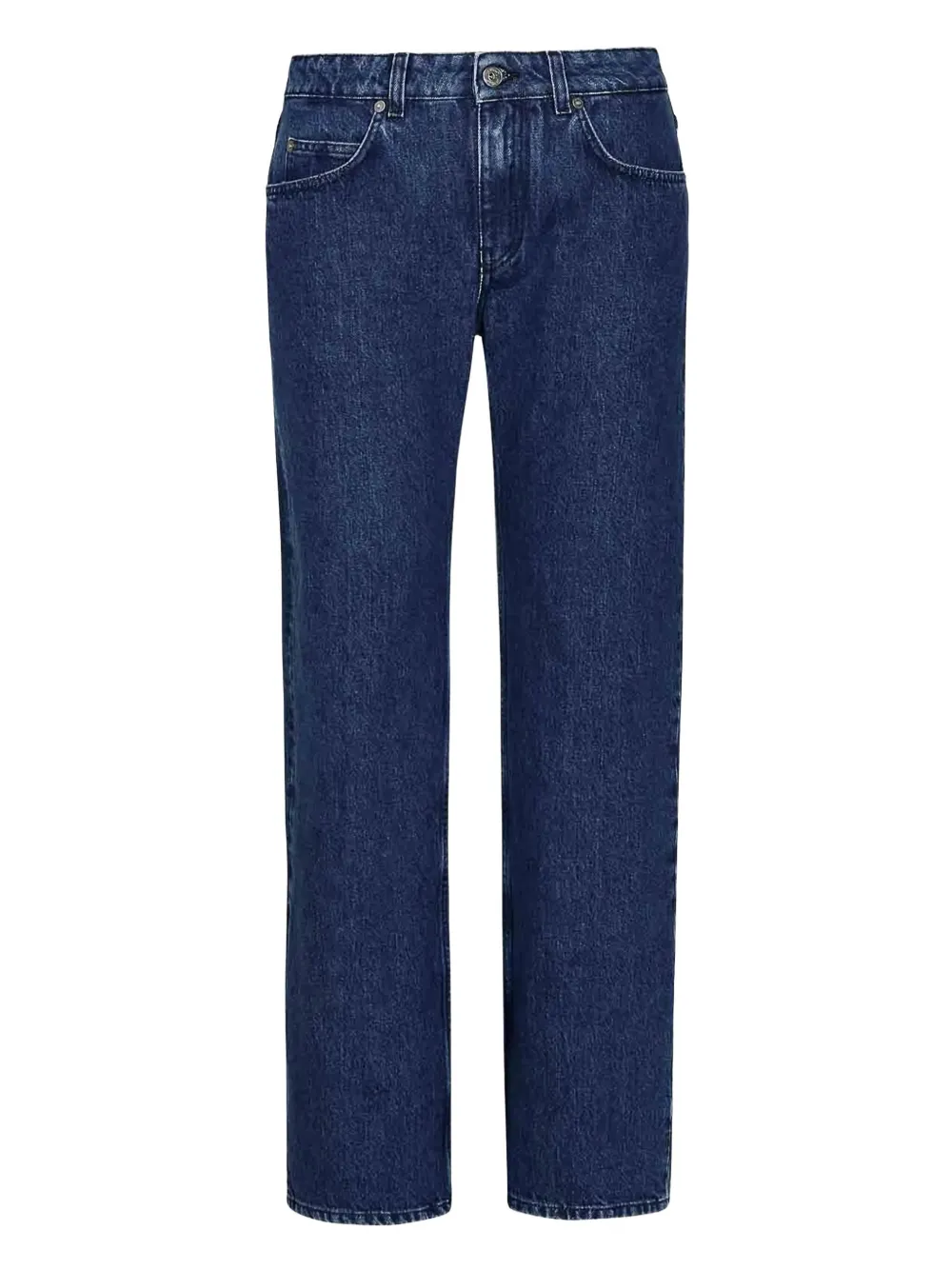 Синий хлопок, дизайн с пятью карманами, застежка на пуговицах, нашивка с логотипом