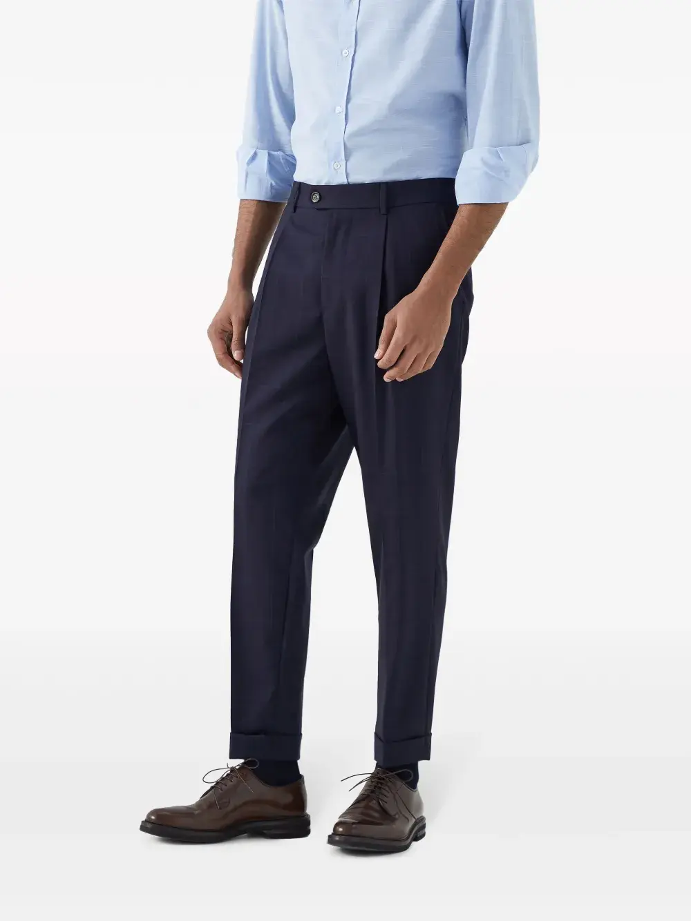 Check-pattern virgin-wool trousers Brunello Cucinelli, синий