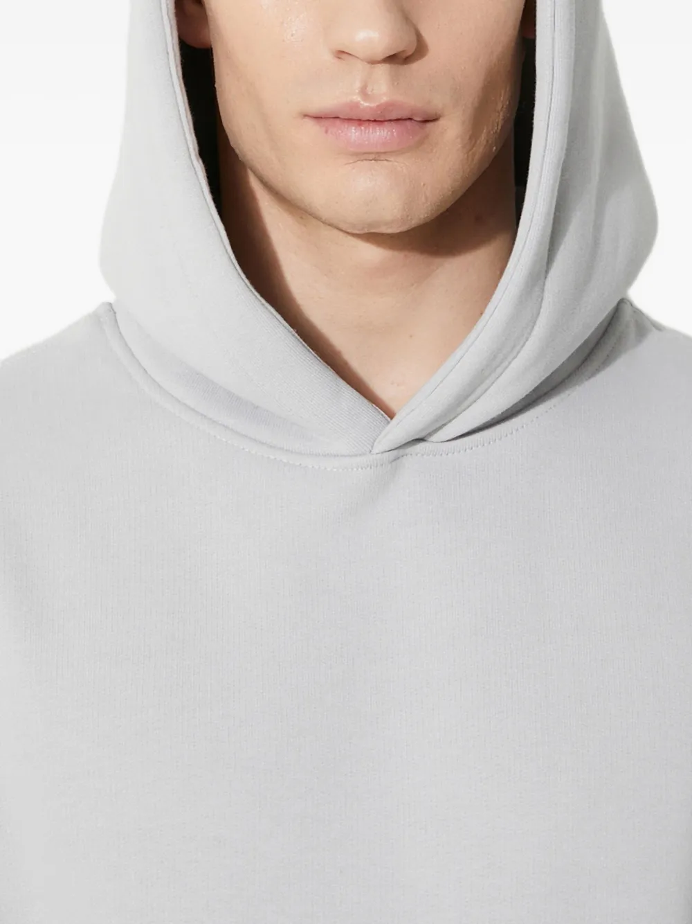 Светло-серая классическая толстовка с капюшоном, карманом-кенгуру, спущенной линией плеча и длинными рукавами