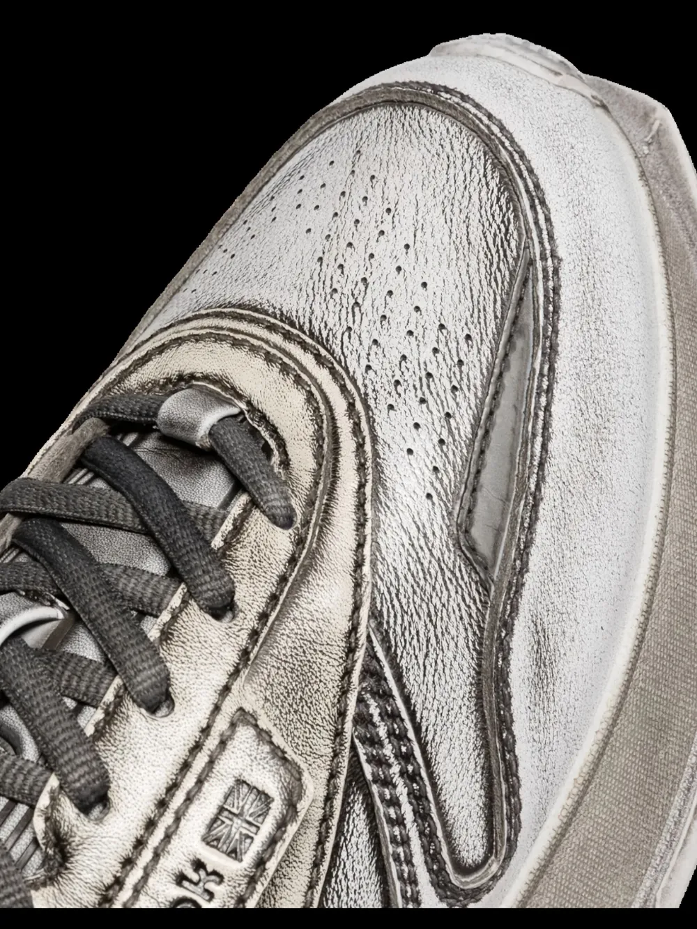 Серый кожаный кроссовок с фигурной подошвой, шнуровкой и перфорированными деталями