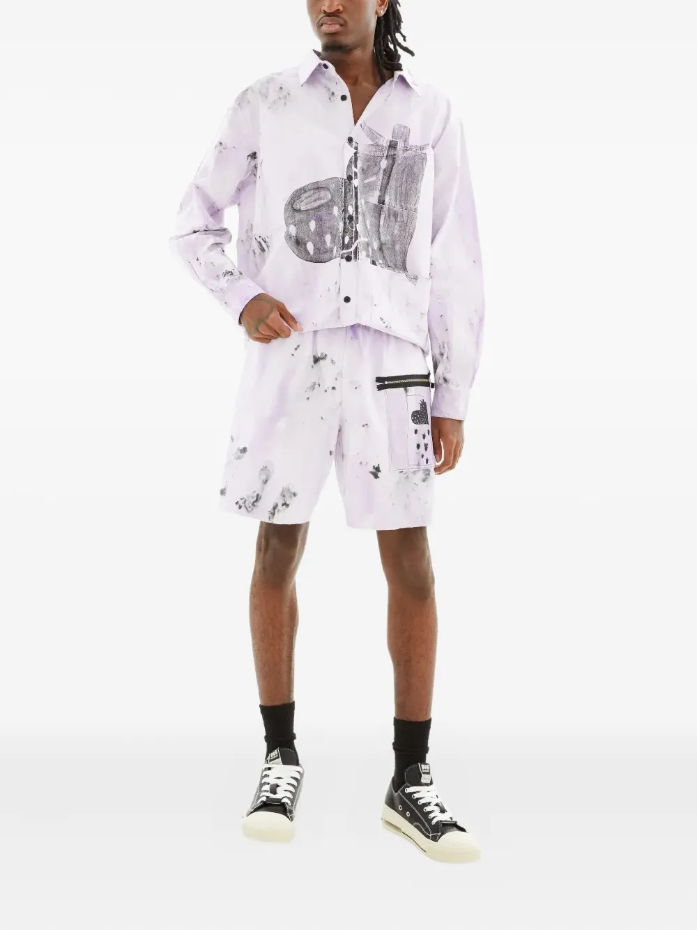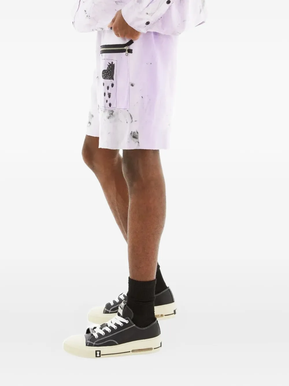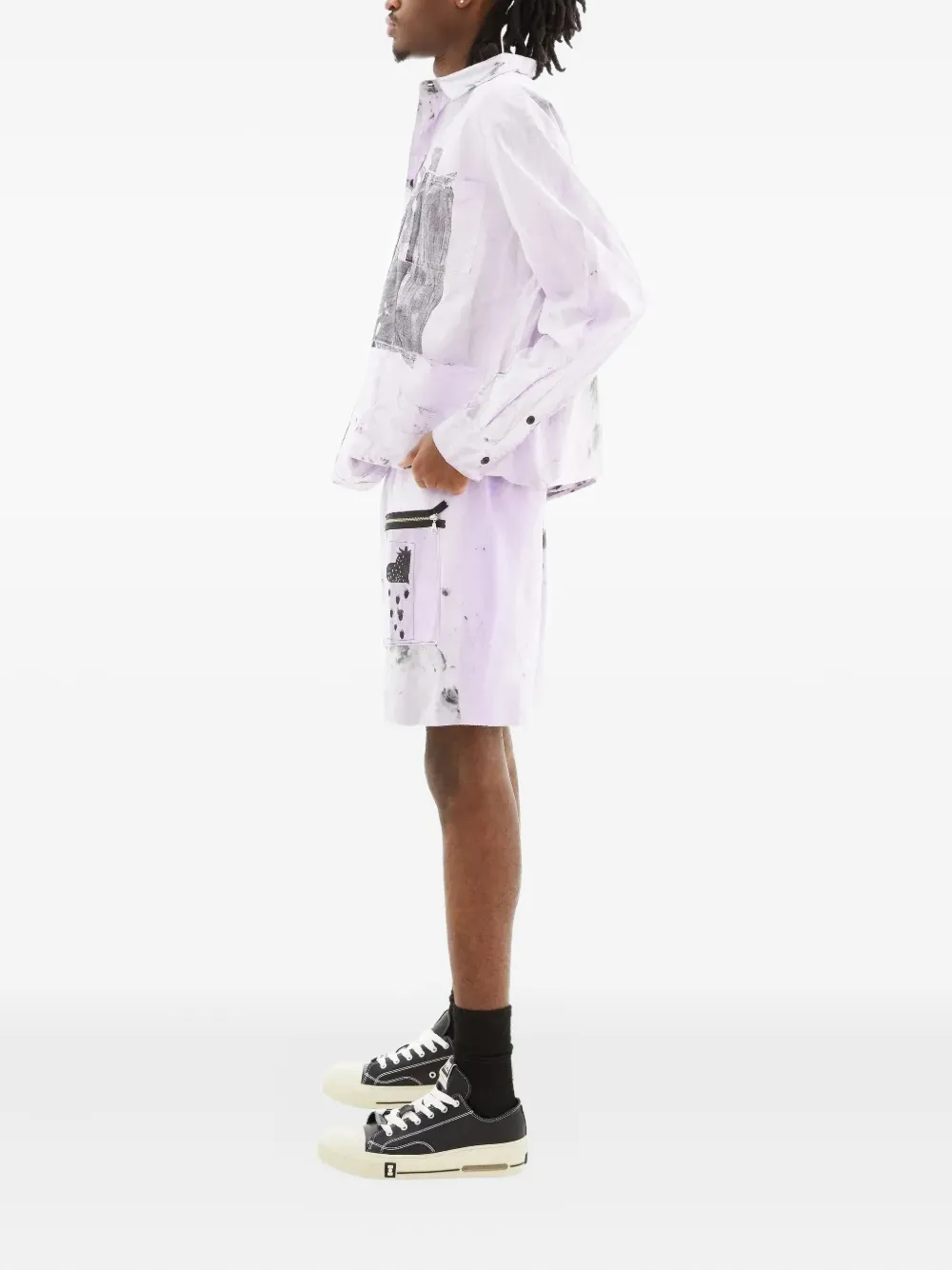 Светло-фиолетовые брюки с карманом на молнии и эластичным поясом