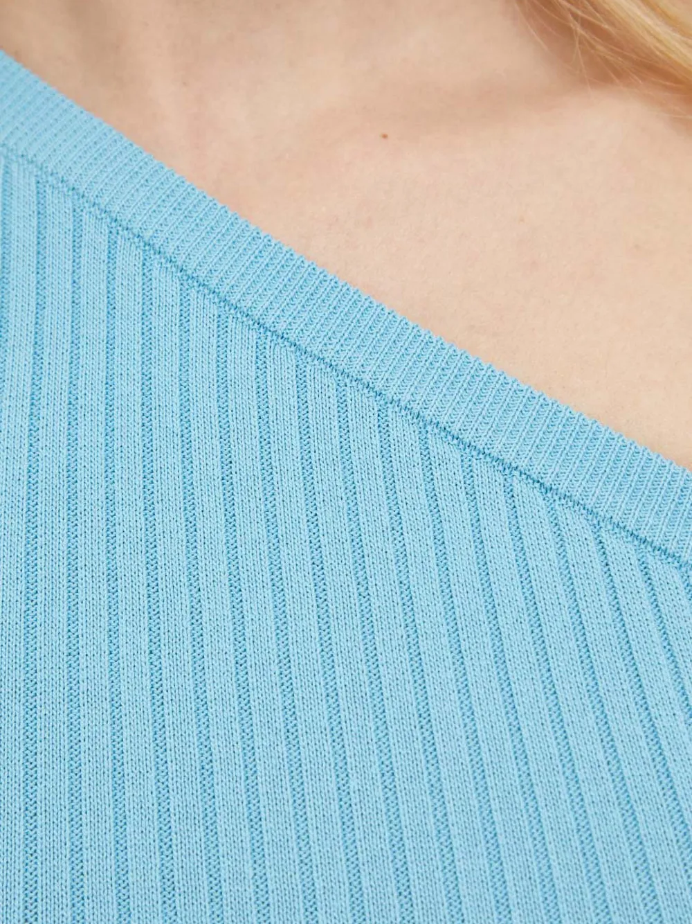 Светло-голубой фактура в рубчик вырез на одно плечо длинный рукав