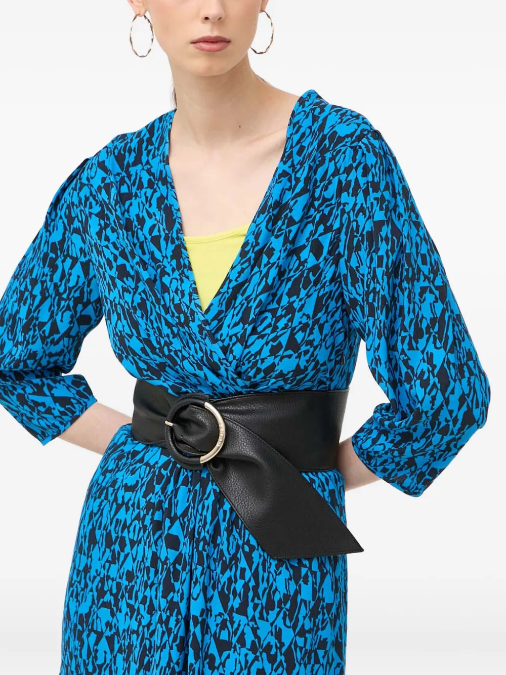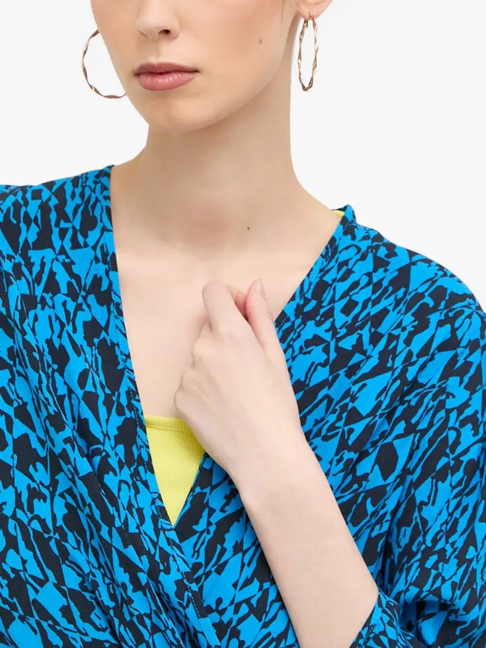 Синий абстрактный принт запах спереди v-образный вырез