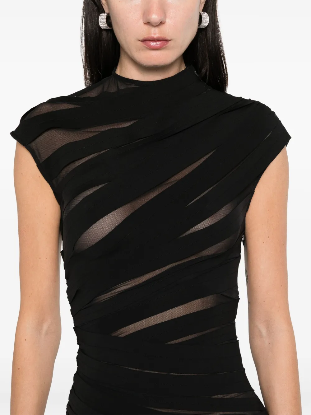 Прозрачное платье мини со сборками Mugler, черный