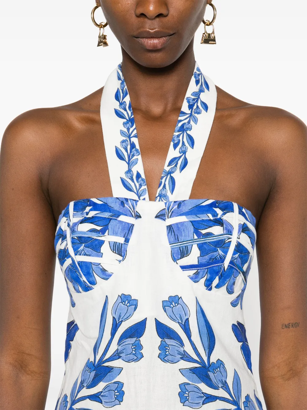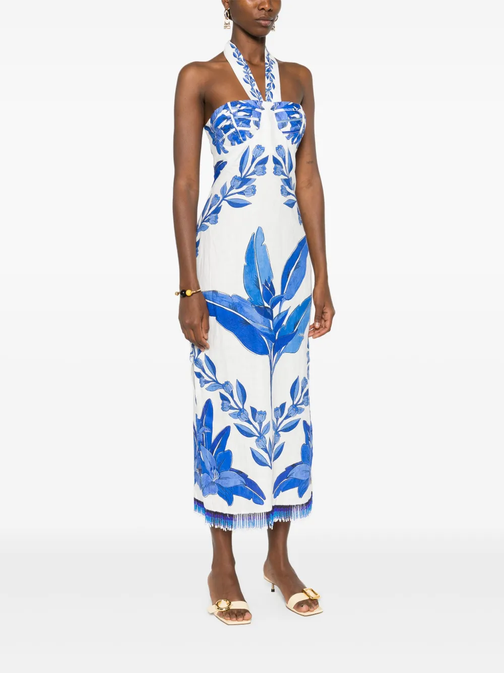 Платье макси с цветочным принтом FARM Rio, синий