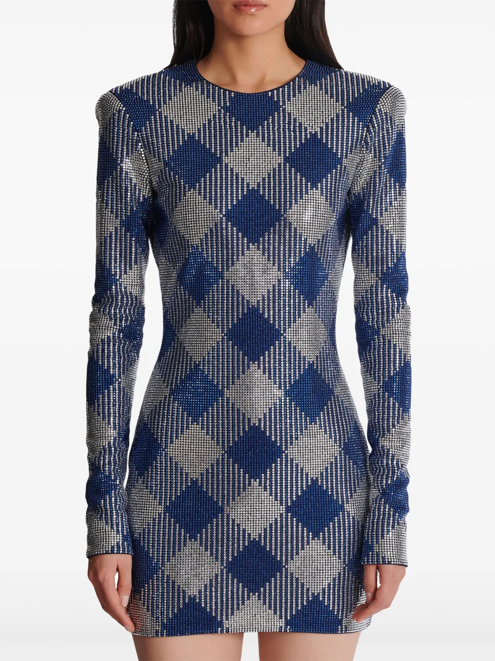 Платье мини в клетку гингем BALMAIN, синий 656 520₽
