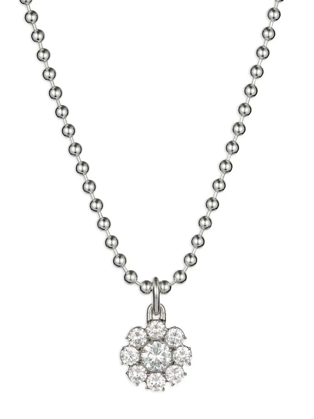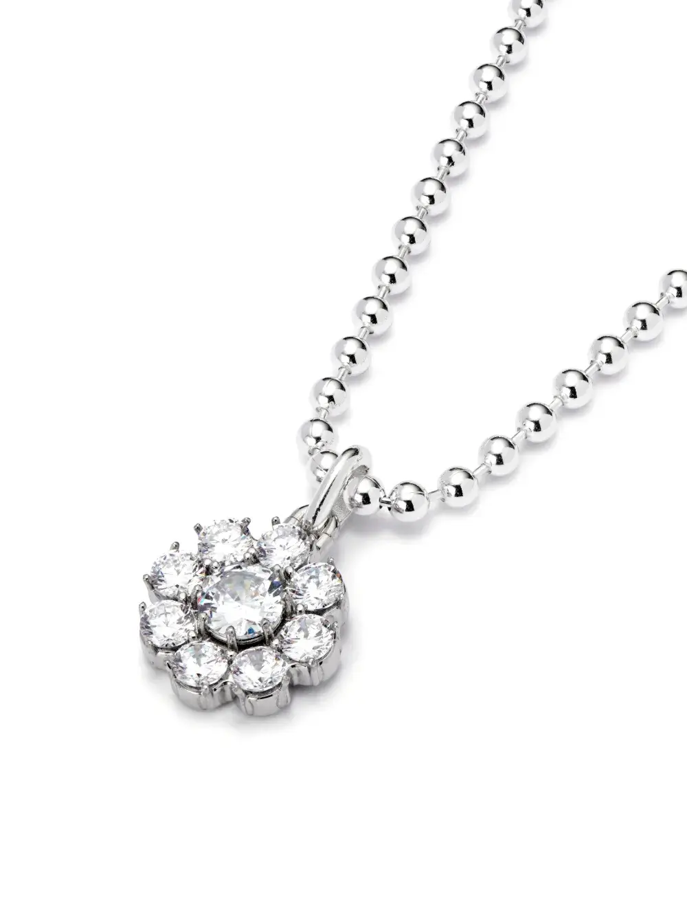 Подробнее о товаре: • серебристый • серебро 925 пробы • фианит • глянцевая фактура • замок-карабин • цепь шарикового плетения • подвеска-акцент • цветочная аппликация • кристаллы • Повседневное использование и воздействие внешних факторов могут уменьшить блеск драгоценных камней и поверхностей, покрытых золотом. Для ухода используйте специальные неабразивные средства, предназначенные для чистки ювелирных изделий.