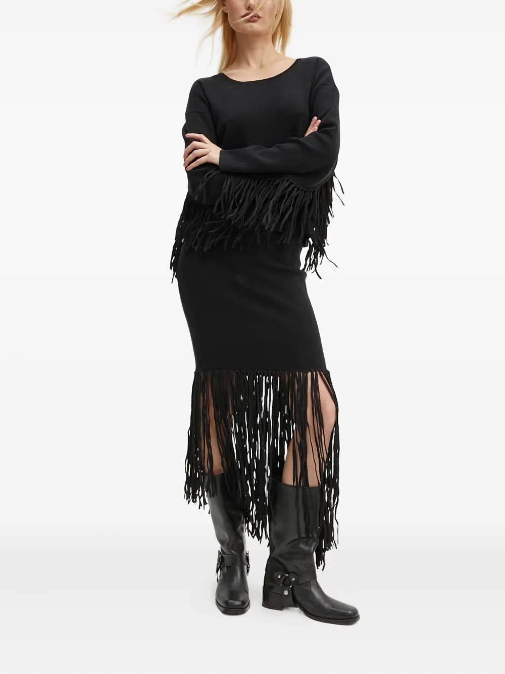Миди-юбка с отделкой бахромой MUNTHE, черный 25 694₽