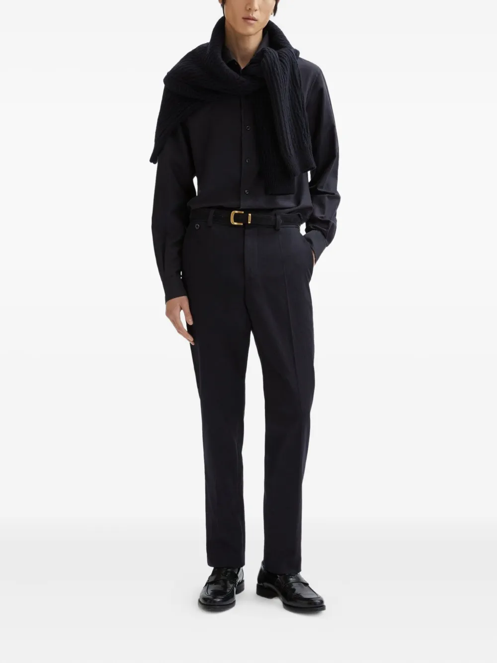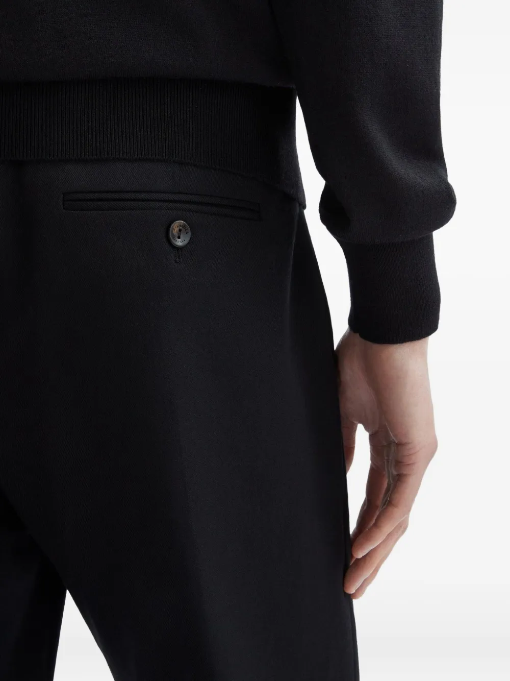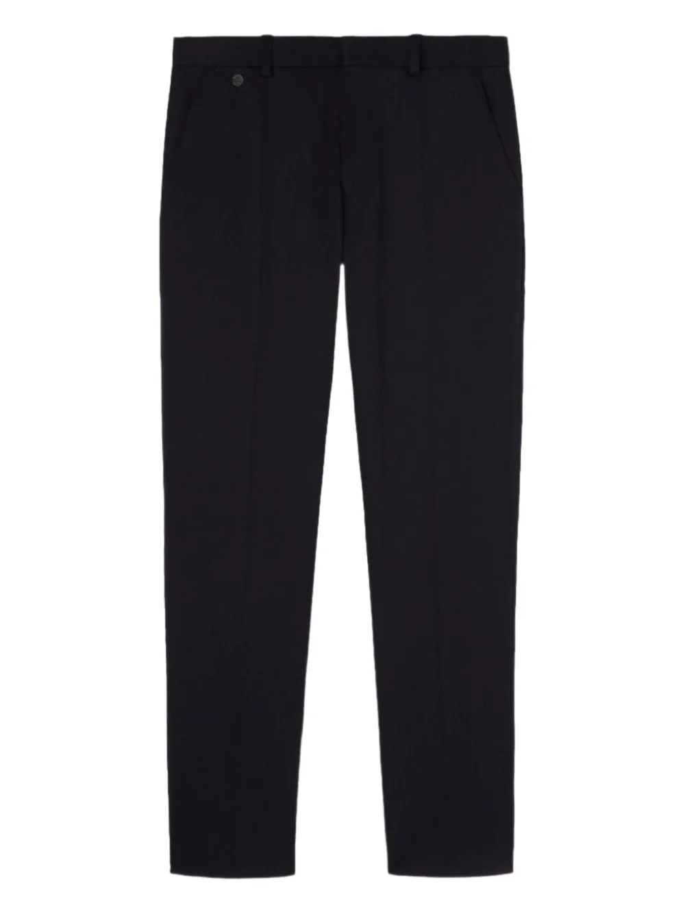 Темно-синие брюки из смеси шерсти и кашемира с фланелевой отделкой, скрытая застежка спереди, шлевки для ремня, боковые карманы, задний прорезной карман