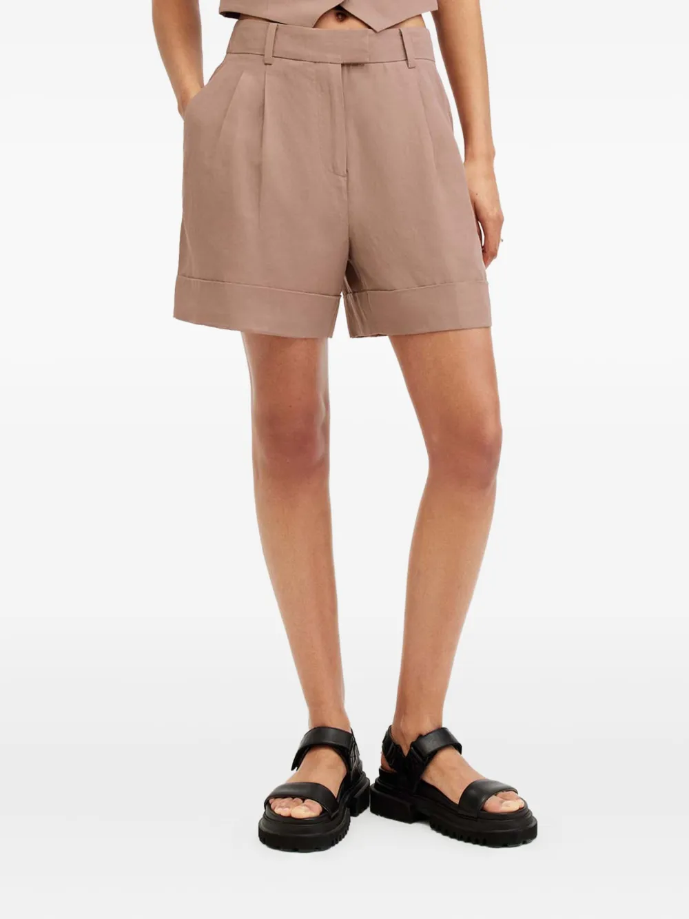 Шорты с плиссированными манжетами AllSaints, коричневый