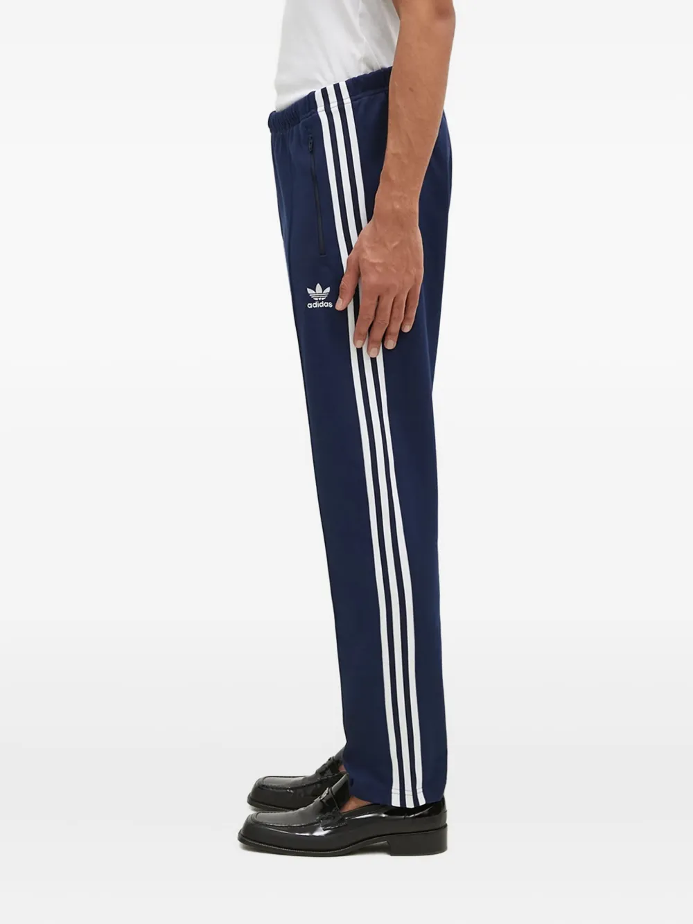 Темно-синий три полоски эластичный пояс боковые карманы вышитый логотип