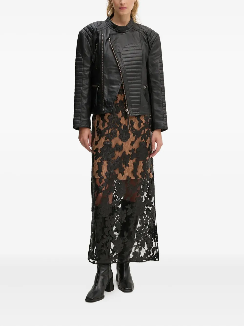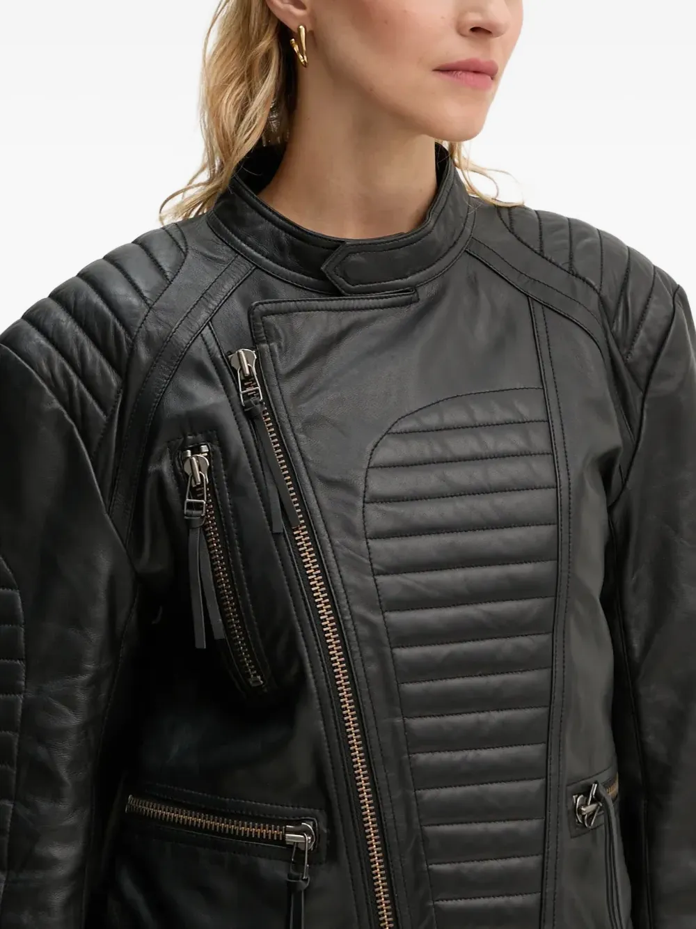Кожаная куртка с простеганными панелями MUNTHE, черный