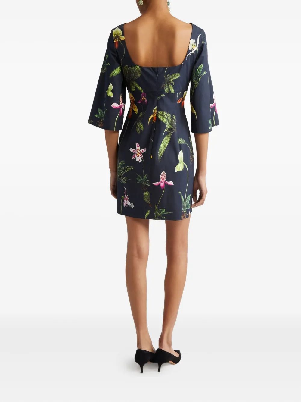 Мини-платье с орхидеями и рукавами-колокол Oscar de la Renta, синий