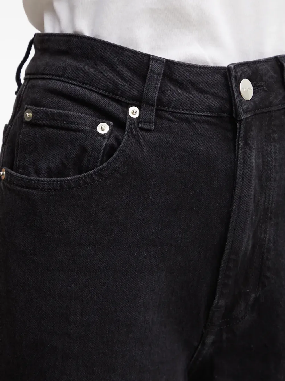 Черные джинсы с высокой талией, застежкой на пуговицах и классическими пятью карманами