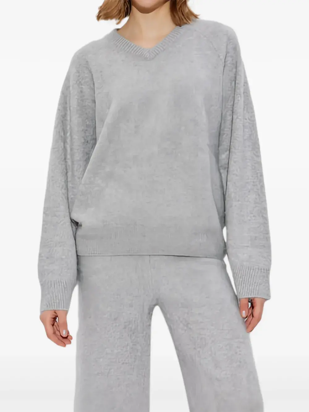 Серый v-образный вырез длинные рукава