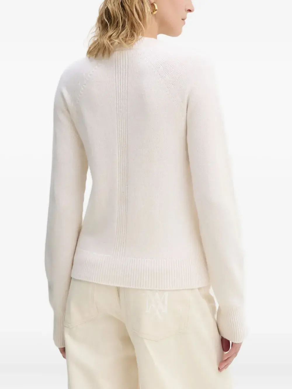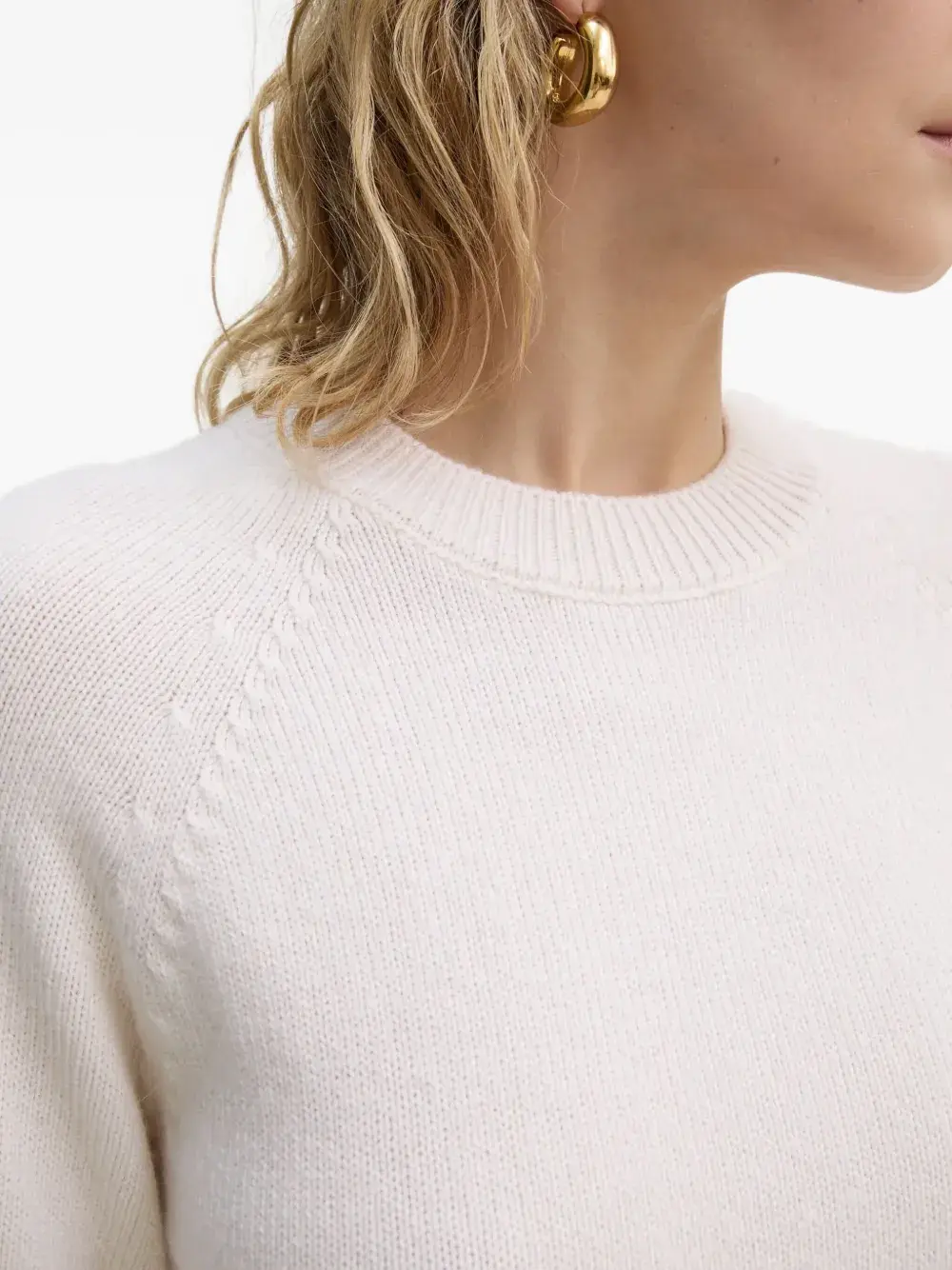 Естественно-белый свитер с рукавами-реглан, круглым вырезом и кашемировыми манжетами в рубчик