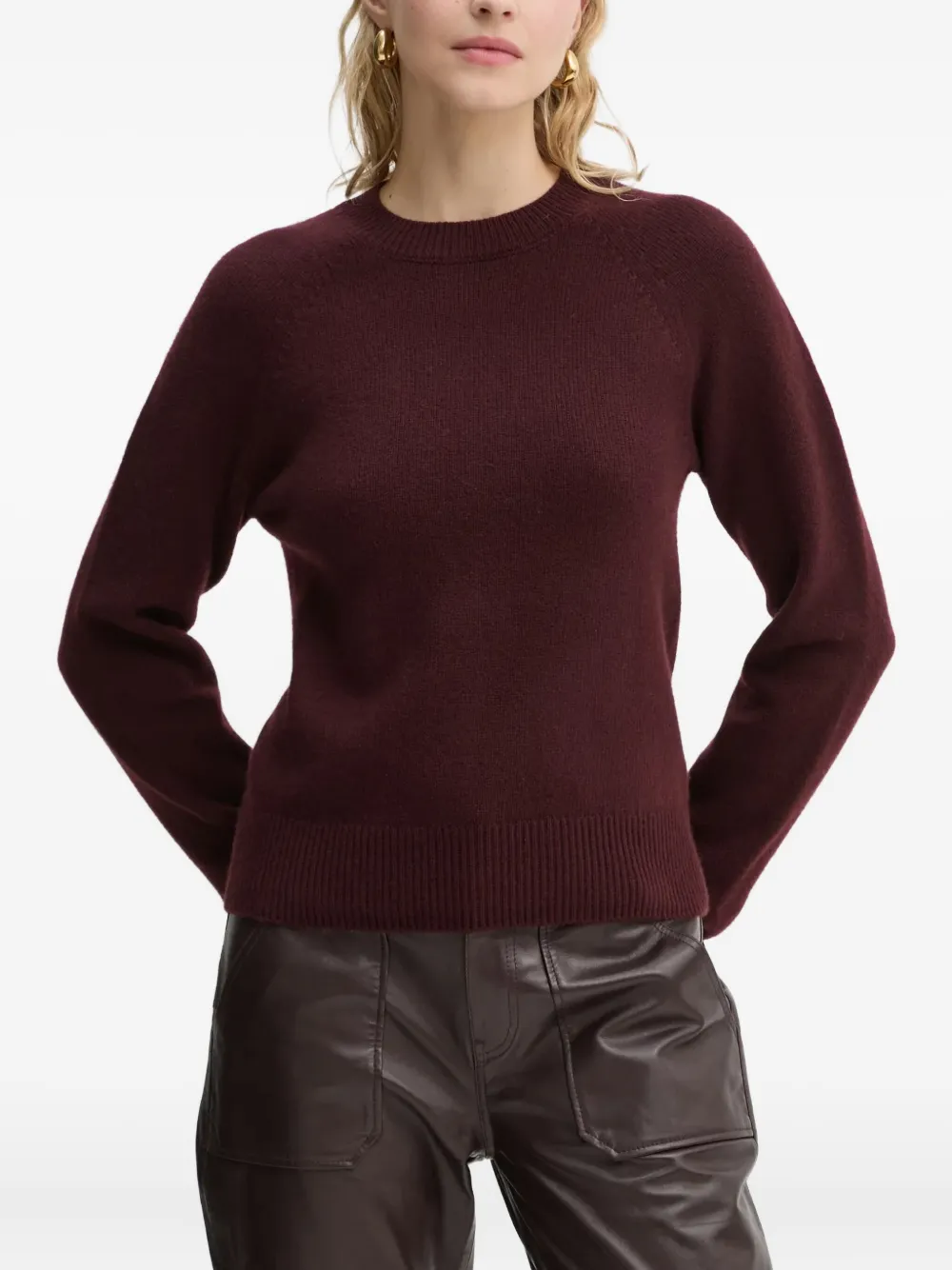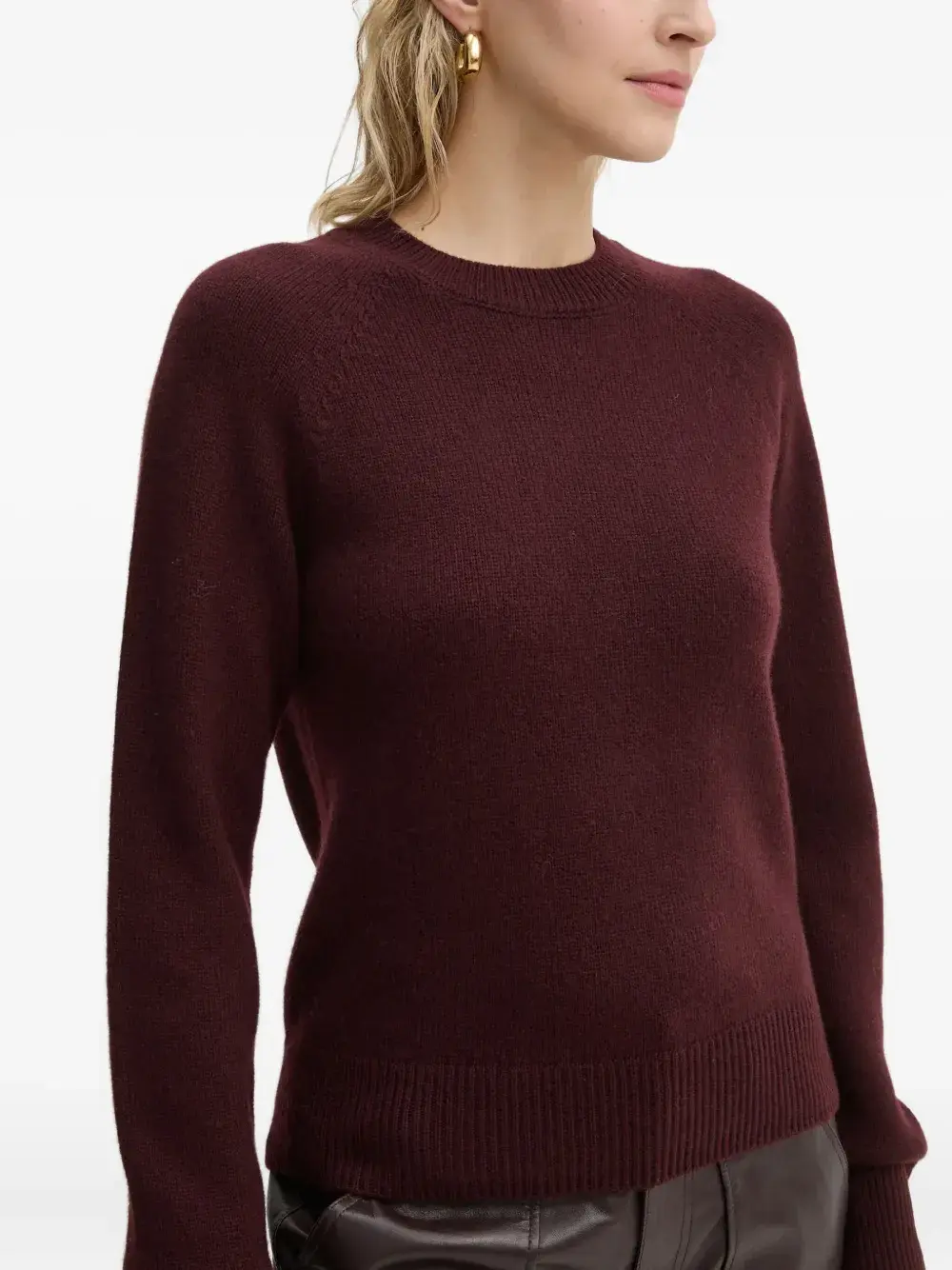 Бордовый свитер с длинными рукавами, круглым вырезом, ребристыми манжетами и ребристым нижним краем, из кашемира