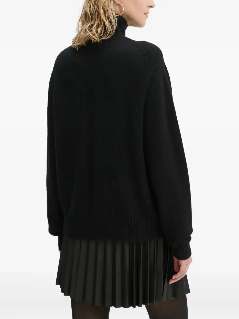 Черная водолазка со спущенными плечами, длинными рукавами и ребристыми манжетами